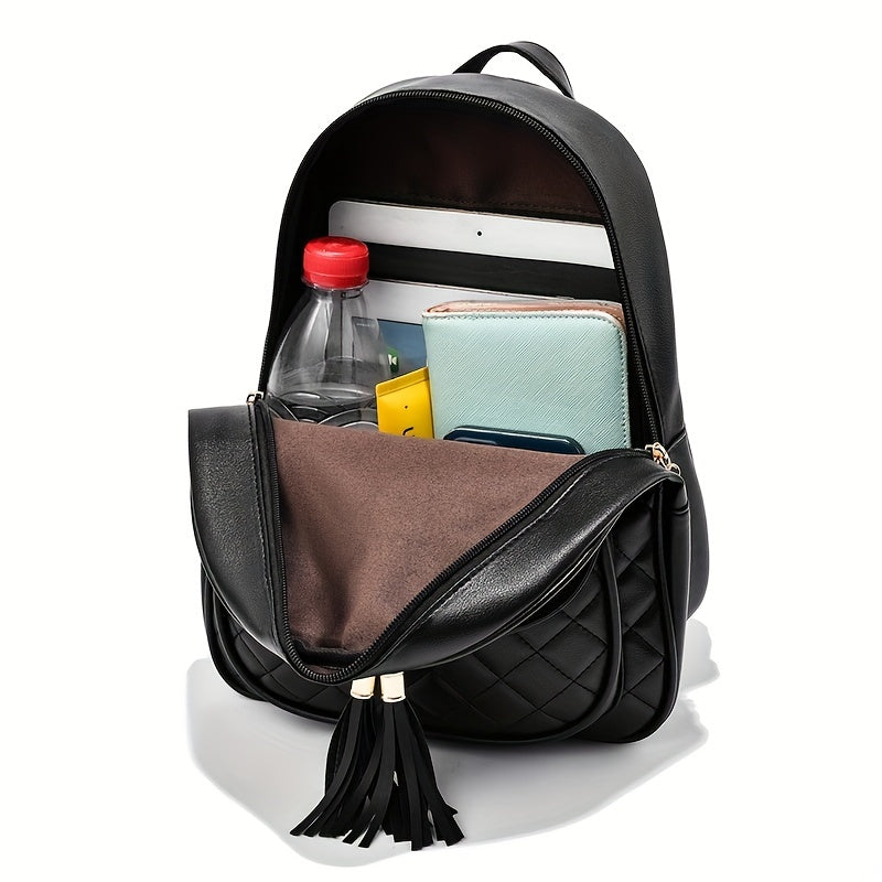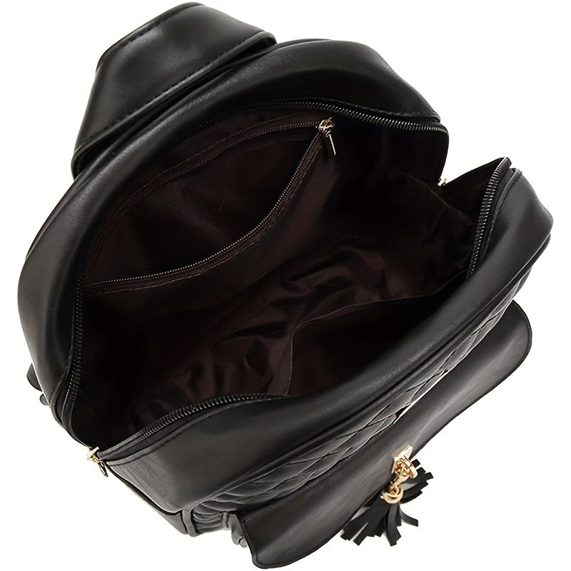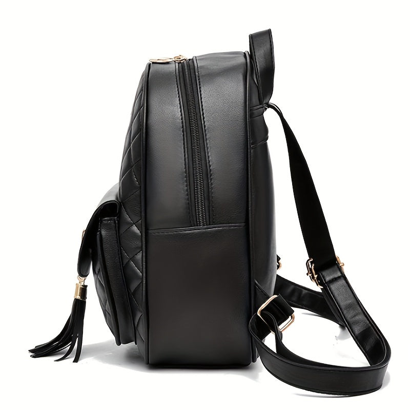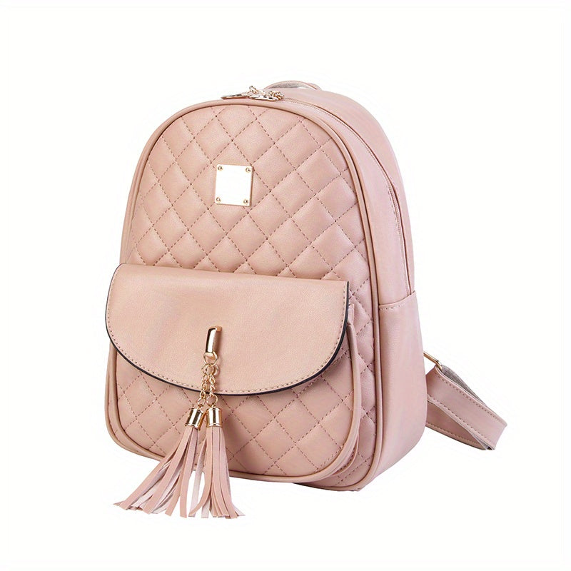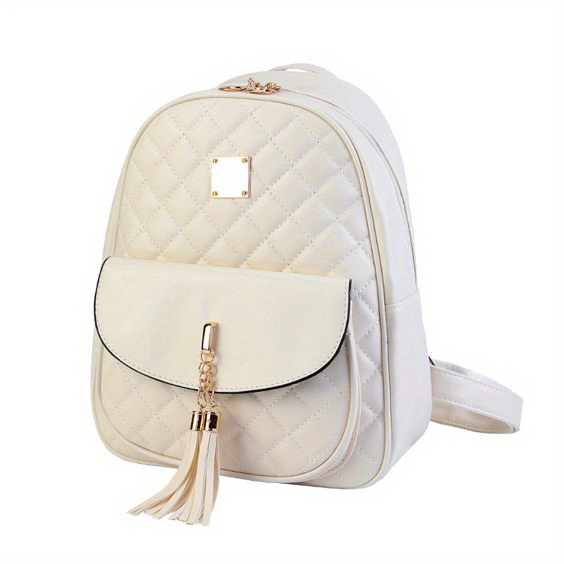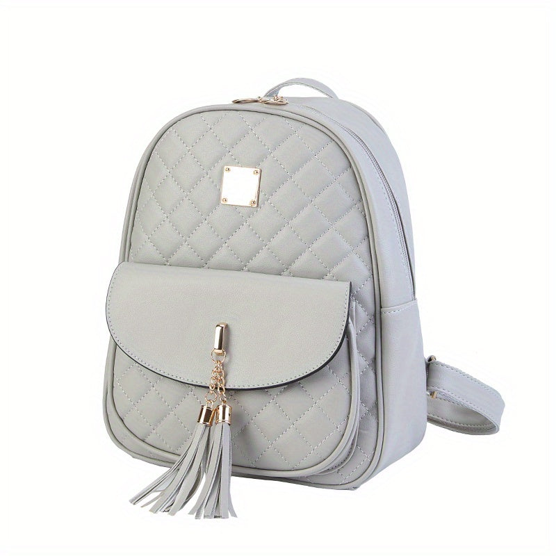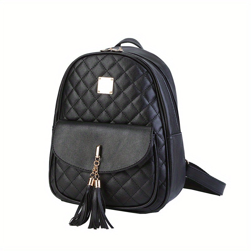 3Pcs Argyle Quilted Backpack Set, Women's PU Leather School Bag With Clutch Purse & Card Holder