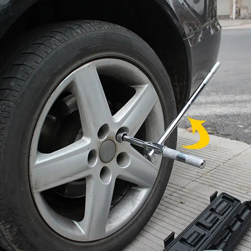 4.Convenient Carrying: The tire lug wrench set includes a storage box for easy transportation. Its compact size and lightweight design make it easy to carry, making it an ideal accessory for special situations or regular maintenance.