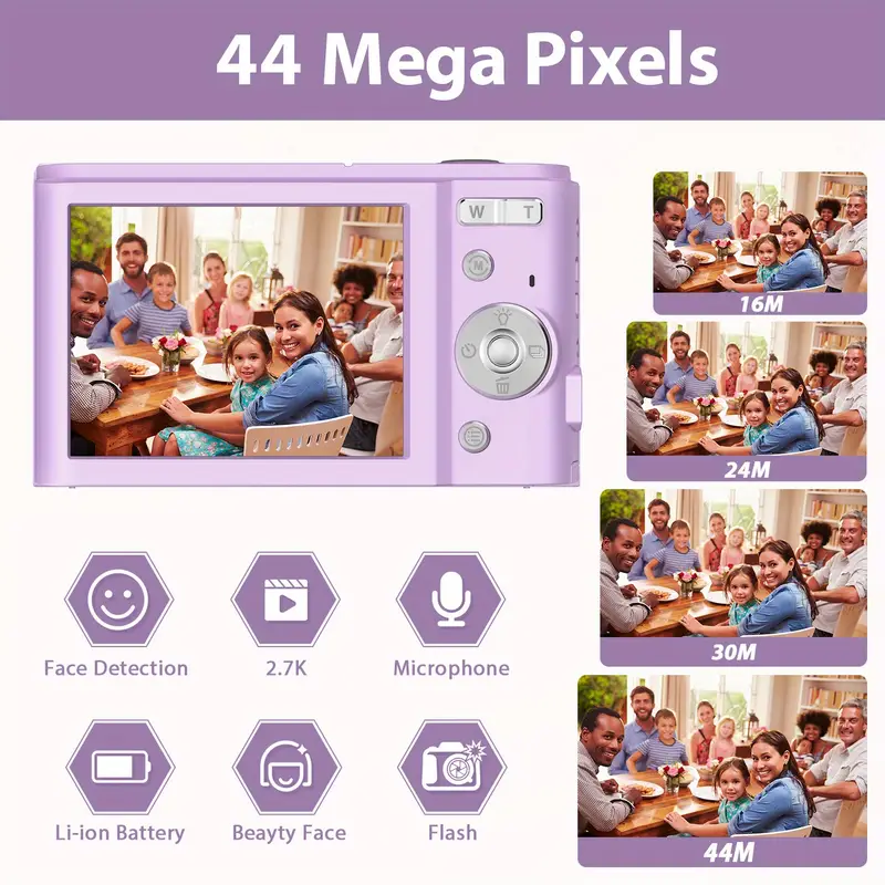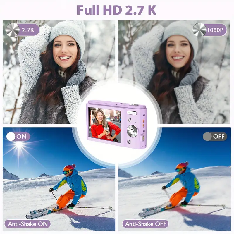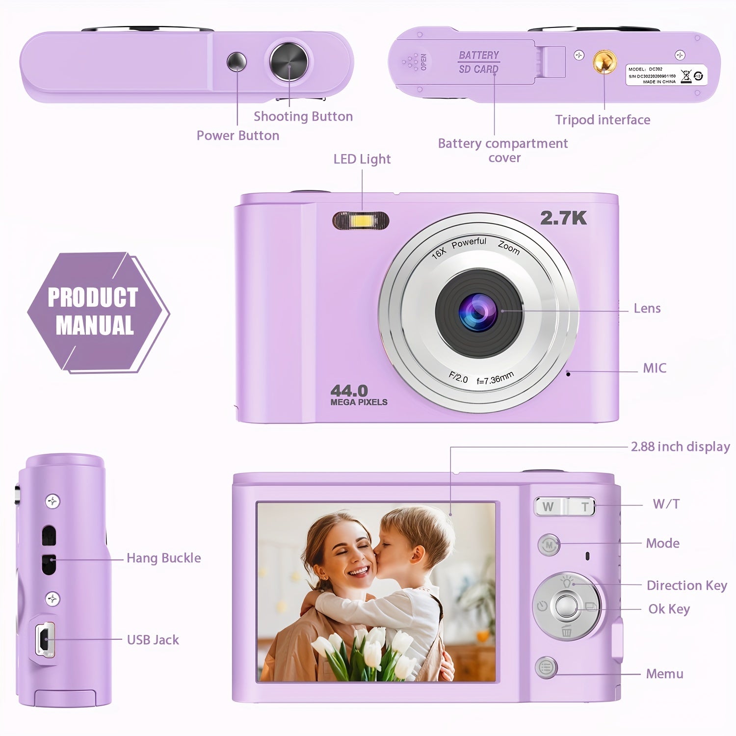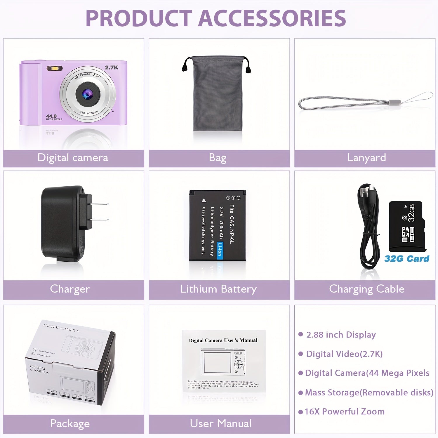 48MP Portable Digital Camera - 32GB Micro SD Card, 16X Zoom Autofocus, Webcam Function & Rechargeable!