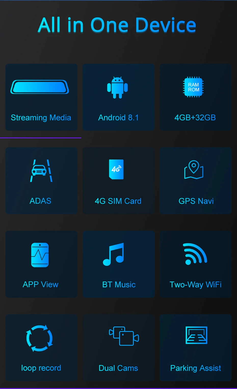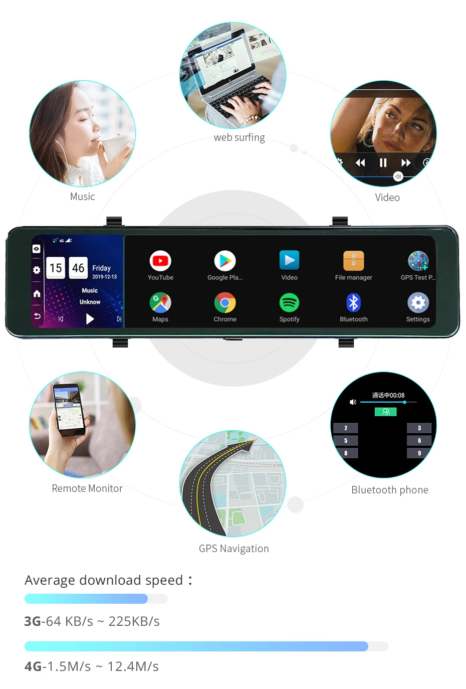 The Quad core 1.4GHZ High performance processor incorporates Android 8.1 smart systems. it makes the car dvr runs more quickly. You can download any APP from google play store.