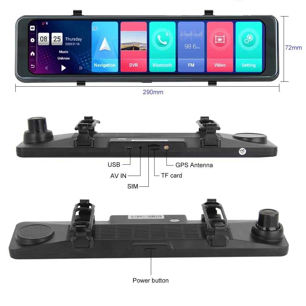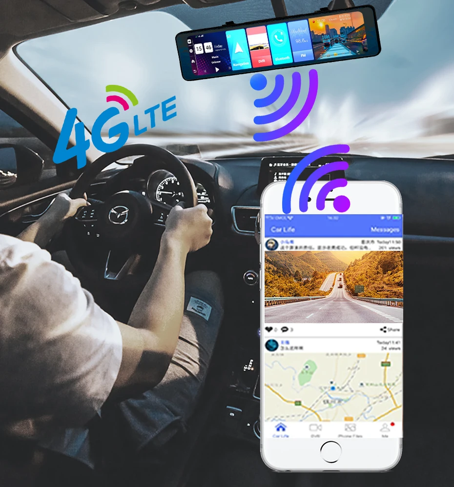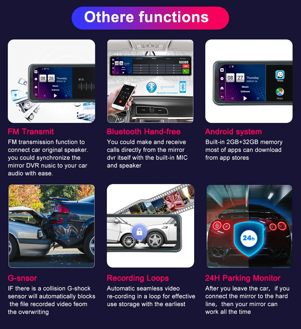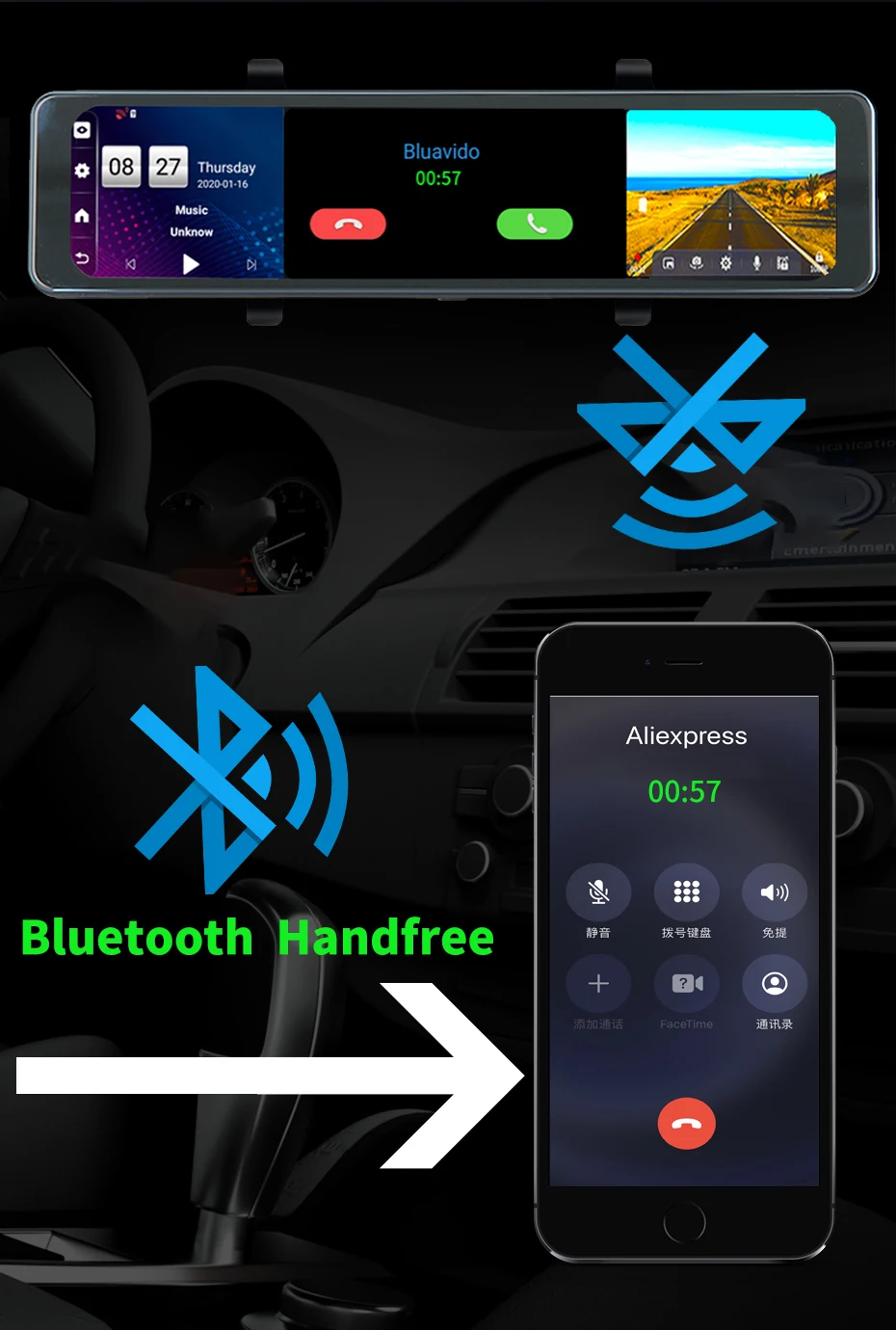Supports bluetooth hands-free, after pairing the bluetooth between dvr and smartphone,you could make and receive calls directly from the mirror dvr itself with the built-in MIC and speaker.