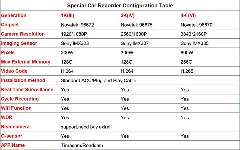 4K 2160P Wifi Car DVR Dashcam Video Recorder for Mazda Toyota/Chevrolet/Ford/Nissan/Hyundai Adjustable Angle Control by App