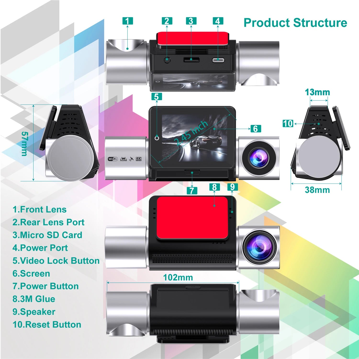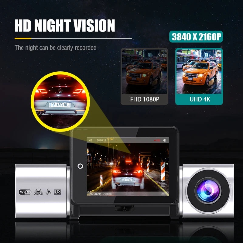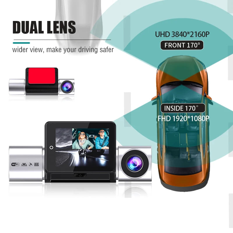 2.Double Camera working at the same time,Front 4K INSIDE 1080P