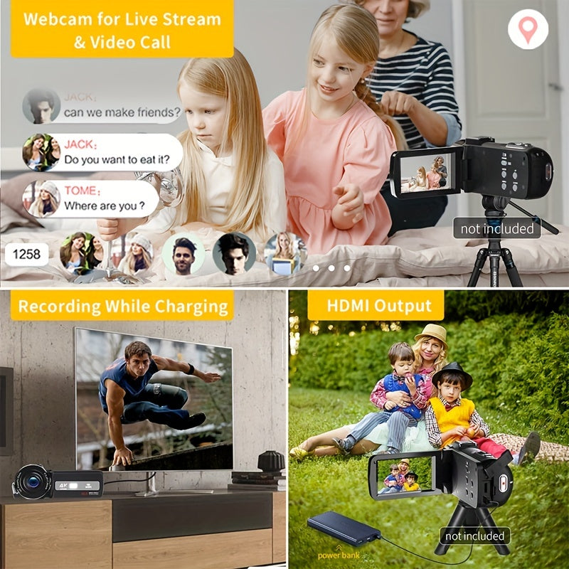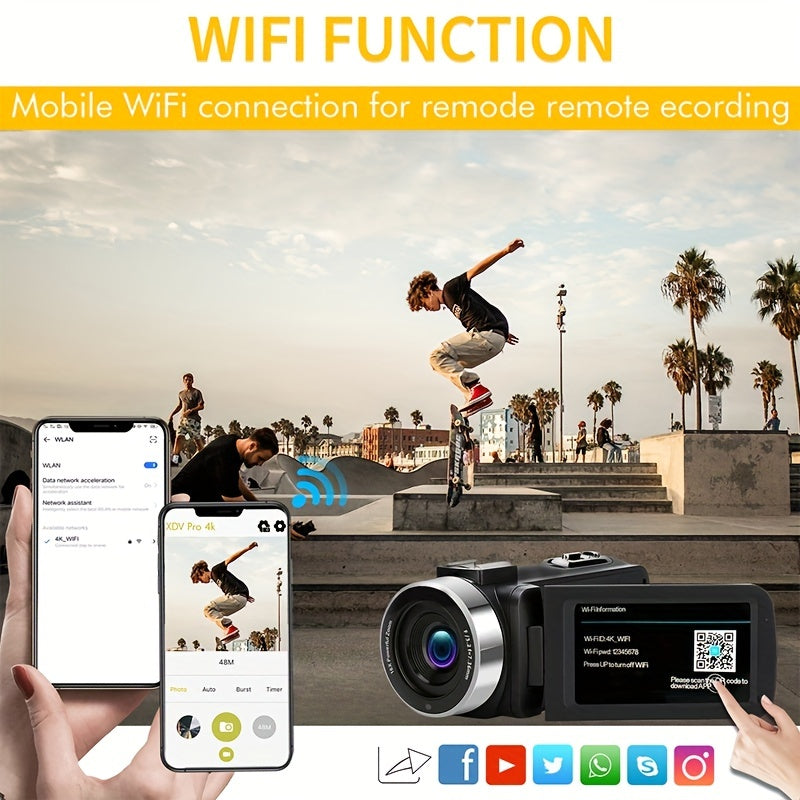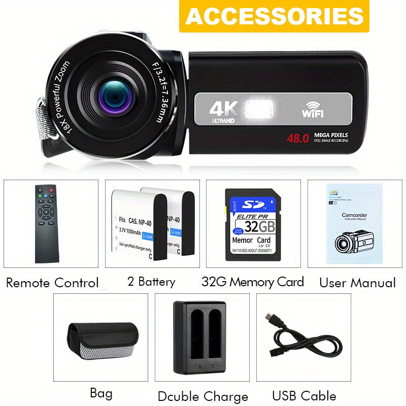 4K HD 48 Million Pixel Video Camera Camcorders, 3.0 Inch Screen, Support 18X Digital Zoom, Video Camera With WIFI Function, Vlogging Camera For YouTube With A 32G SD Card And 2 Batteries