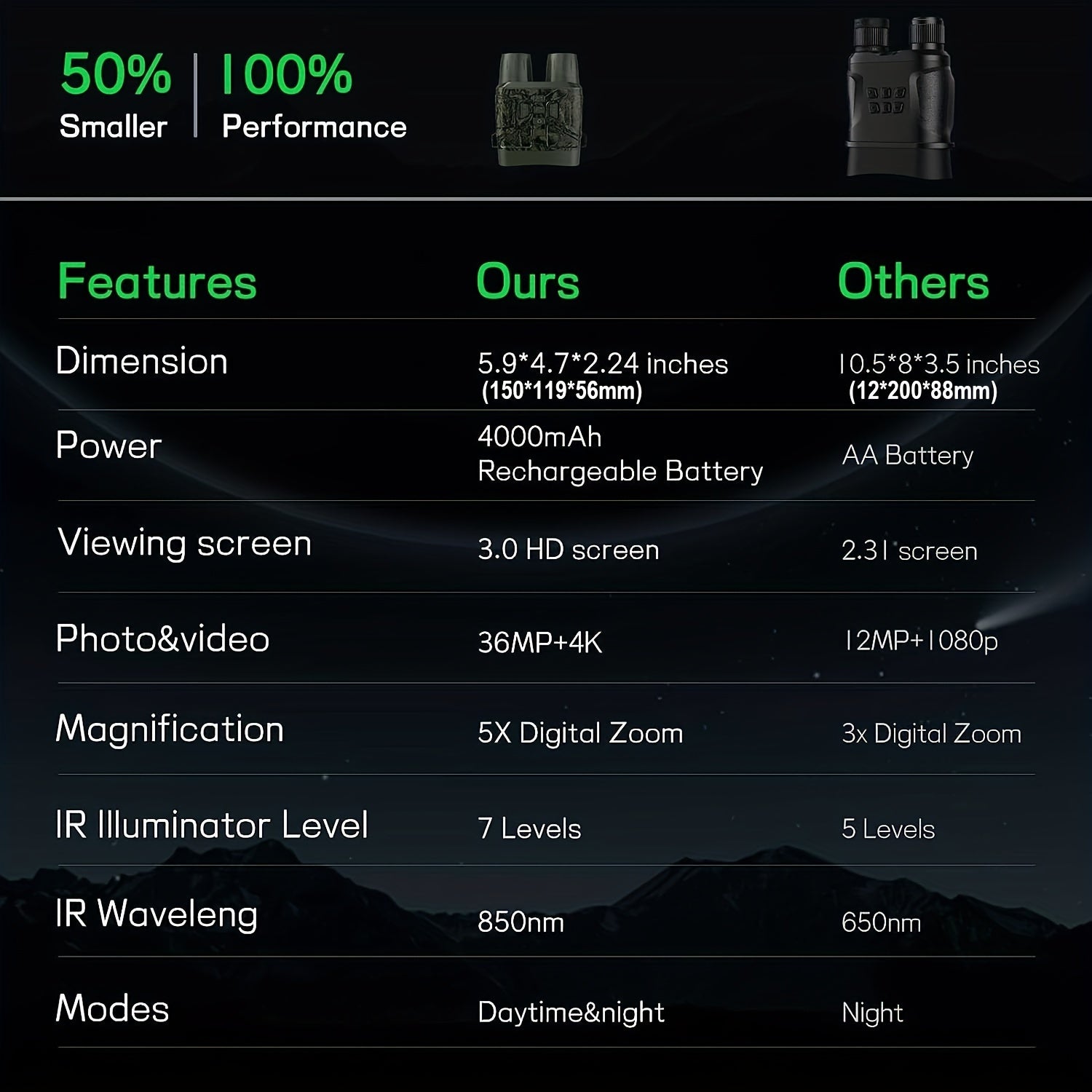 *The Night Vision Binoculars Achieves 4K Full HD Video Resolution And Pixels Photos. The Motion Detection Function Can Be Turned On When Shooting Videos Of Running Animals,