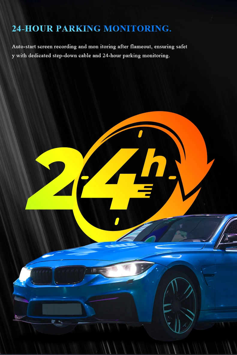 This function is optional. It needs to be equipped with a 24-hour parking monitoring power cord, which is directly connected to the car battery as the power supply device of the traffic recorder. When the car stops, the recording function is still on. After vehicle accident, can be the first time to call up the video.