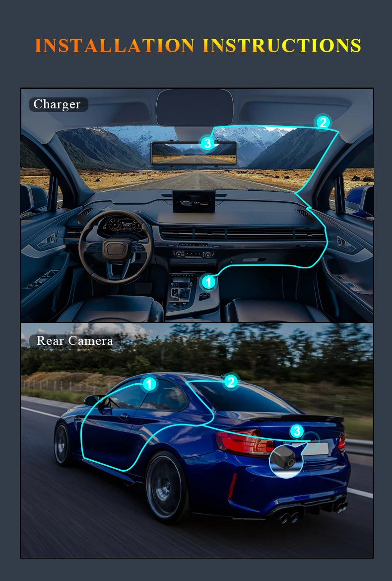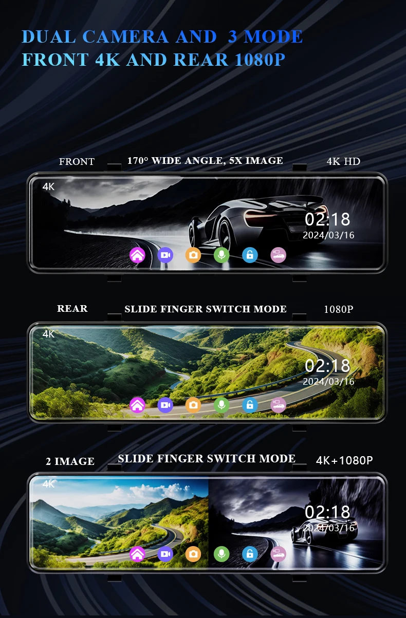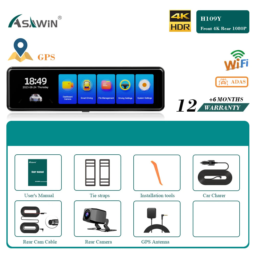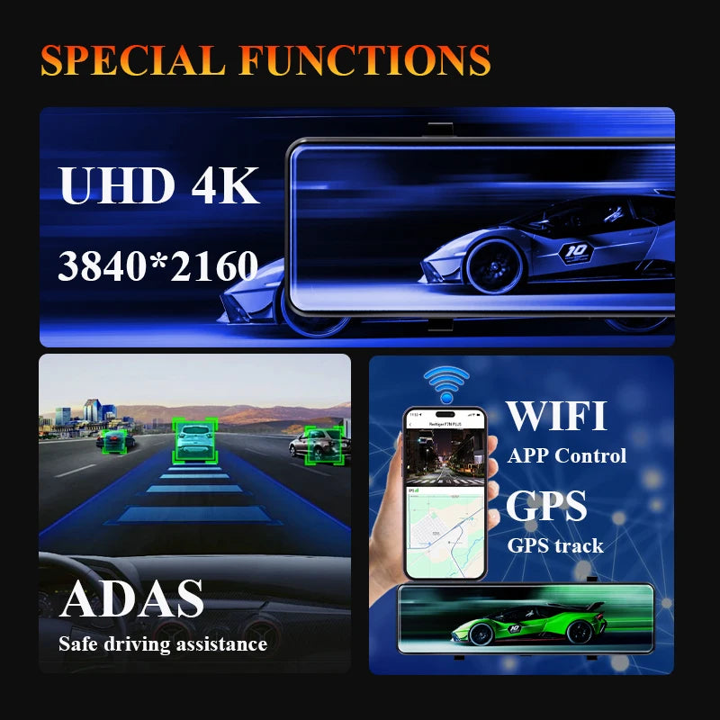 Why Recommend:4K WIFI VIEW .GPS track. ADAS.10 Inch IPS Touch IPS Screen .HD Dual len.24H Park Mode