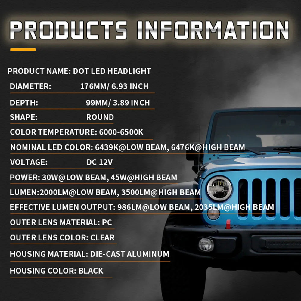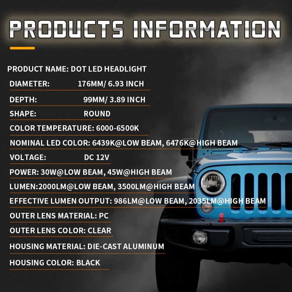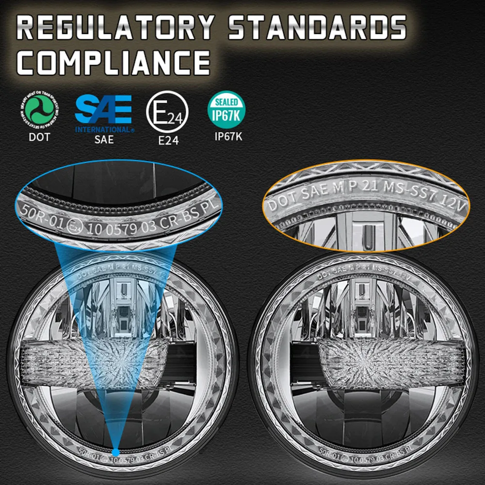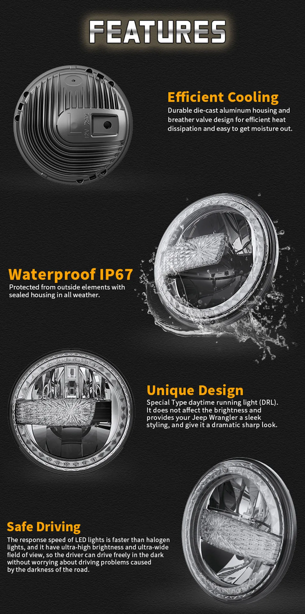 High Brightness, Large Light Emitting Area Than Normal Halogen Headlights. New High Quality 50w 1860 Lamp Beads At The Same Wattage, Led Headlight Has The Best Brightness. Waterproof Rating Ip67, Rain Resistant