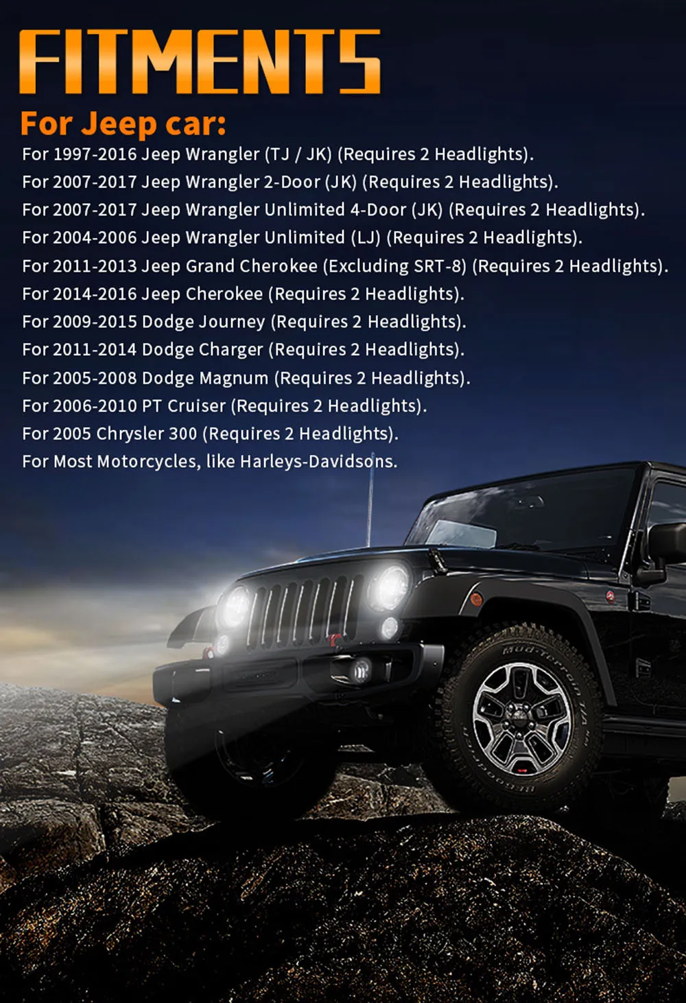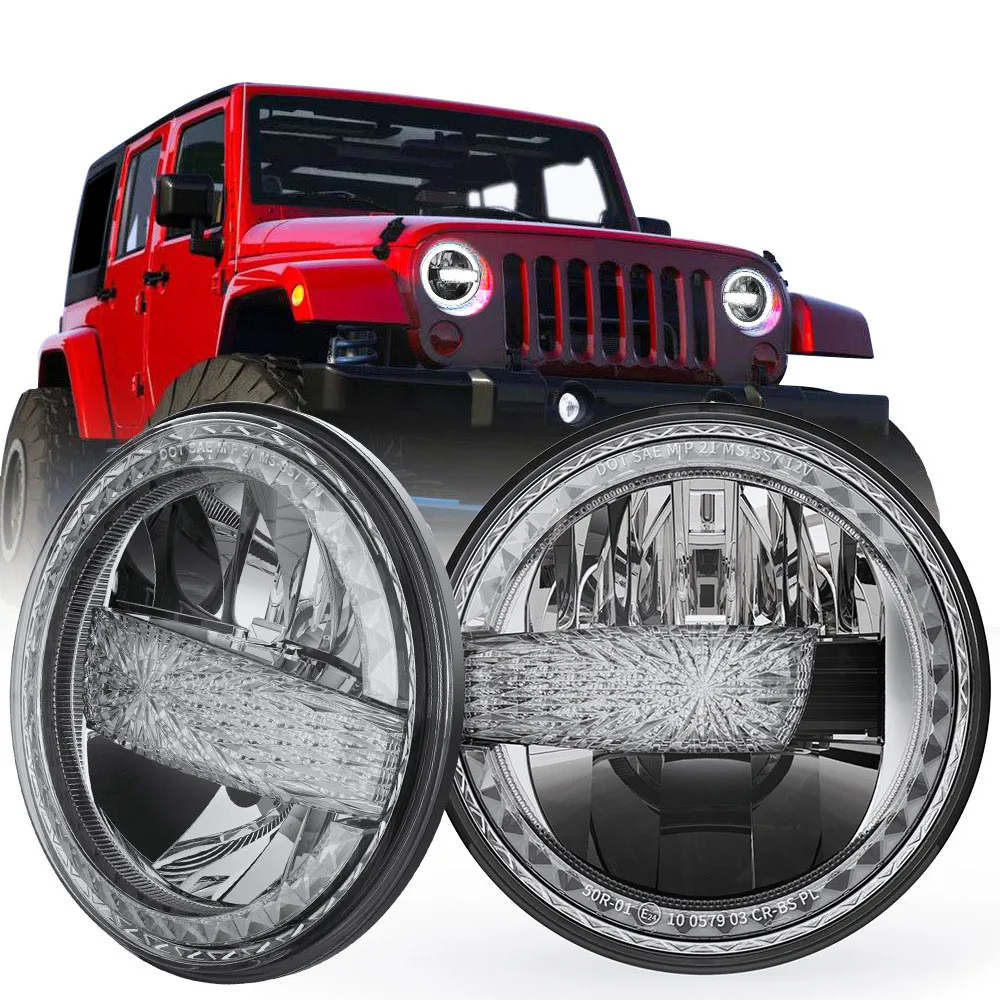 7 Inch Headlights Car Lamp Front Bumper Fog Lights Pick Truck for Jeep JK Wrangler Harley Motorcycle Daytime Turn Signals 90w