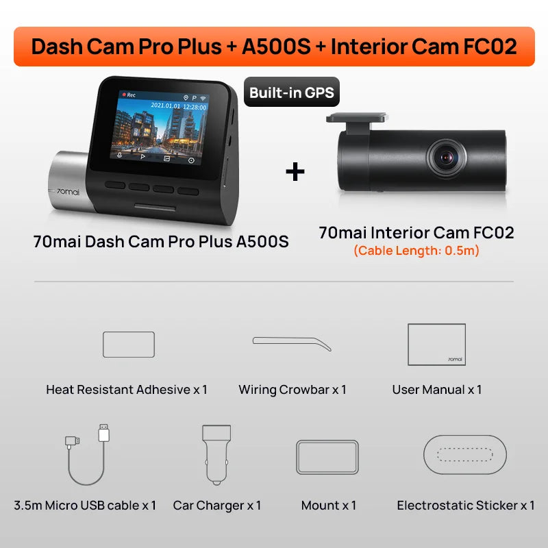 Full Kit Accessories: 70mai Pro Plus+ Charger+ cable+ Crowbar