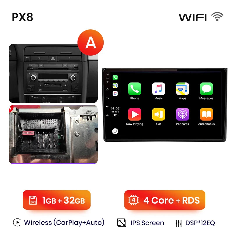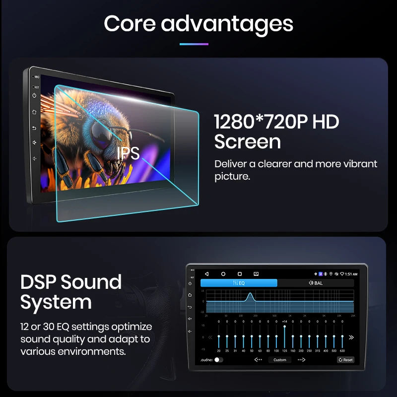 >> 9 inch 2.5D Capacitive Screen + Quad Core 1.2GHZ CPU + DDR3 1GB /2GB / 4GB Flash ( optional) + 16GB /32GB / 64GB Memory ( optional) + Built-in Wifi (4G optional) + GPS Navigation (Map free update)+ Steering Wheel Control + Mirror Link + Bluetooth-compatible+ Built-in Microphone + FM/AM + RDS + support USB DVR ADAS + support Europe DAB Function + 1080P Video Play + HD 1024*600 + support Tire Pressure Monitoring System + support Voice Control