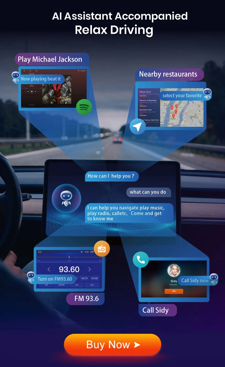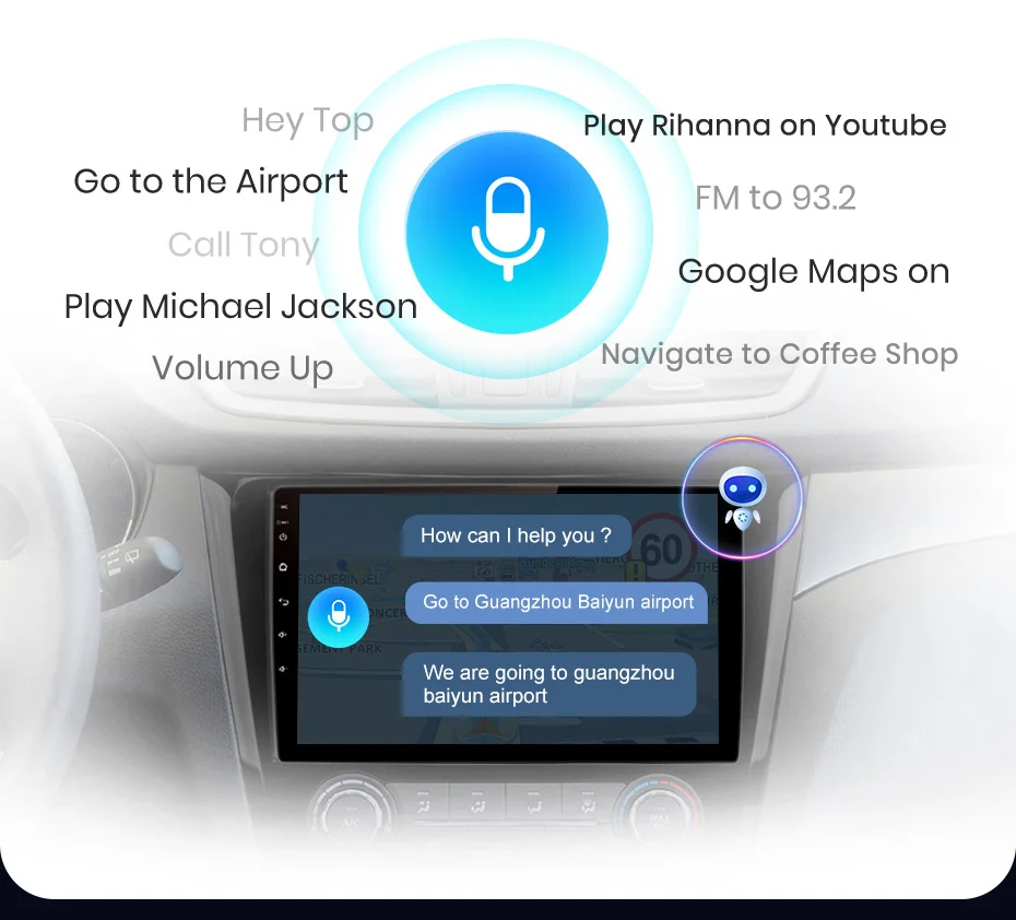You can operate the car radio by speaking some words, it will understand your meaning and execuate it. This function is optional and is operated by a pre-installed application, you need to buy the function so as to use it. Click the picture below to buy.