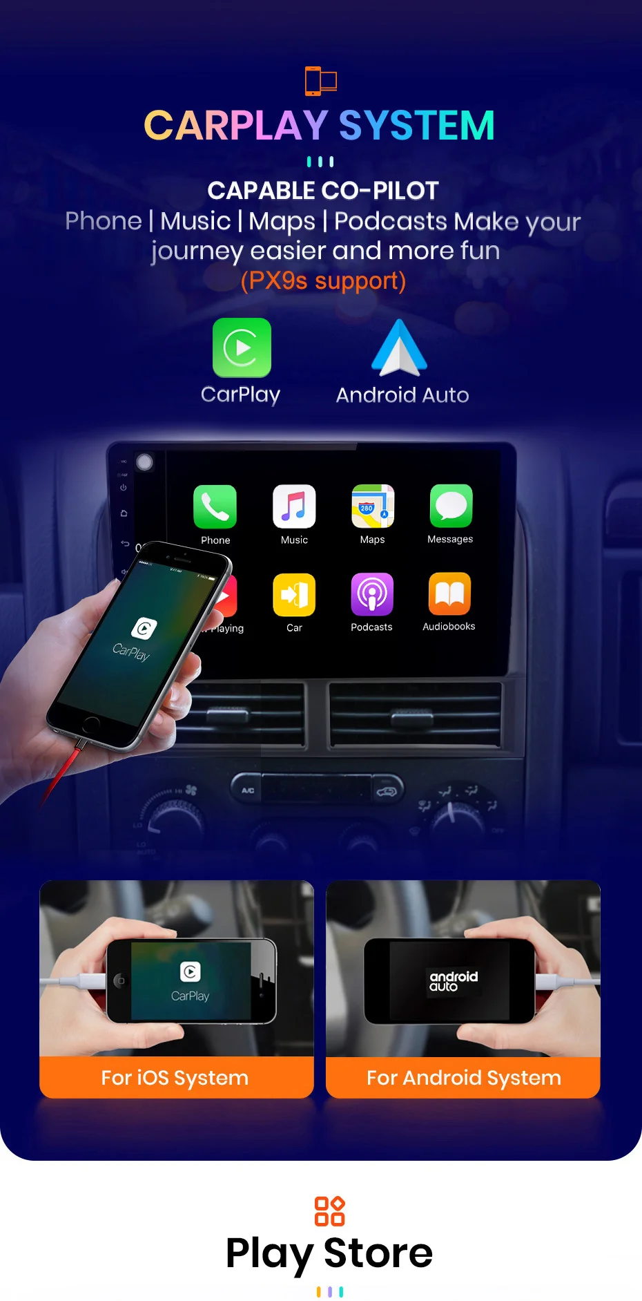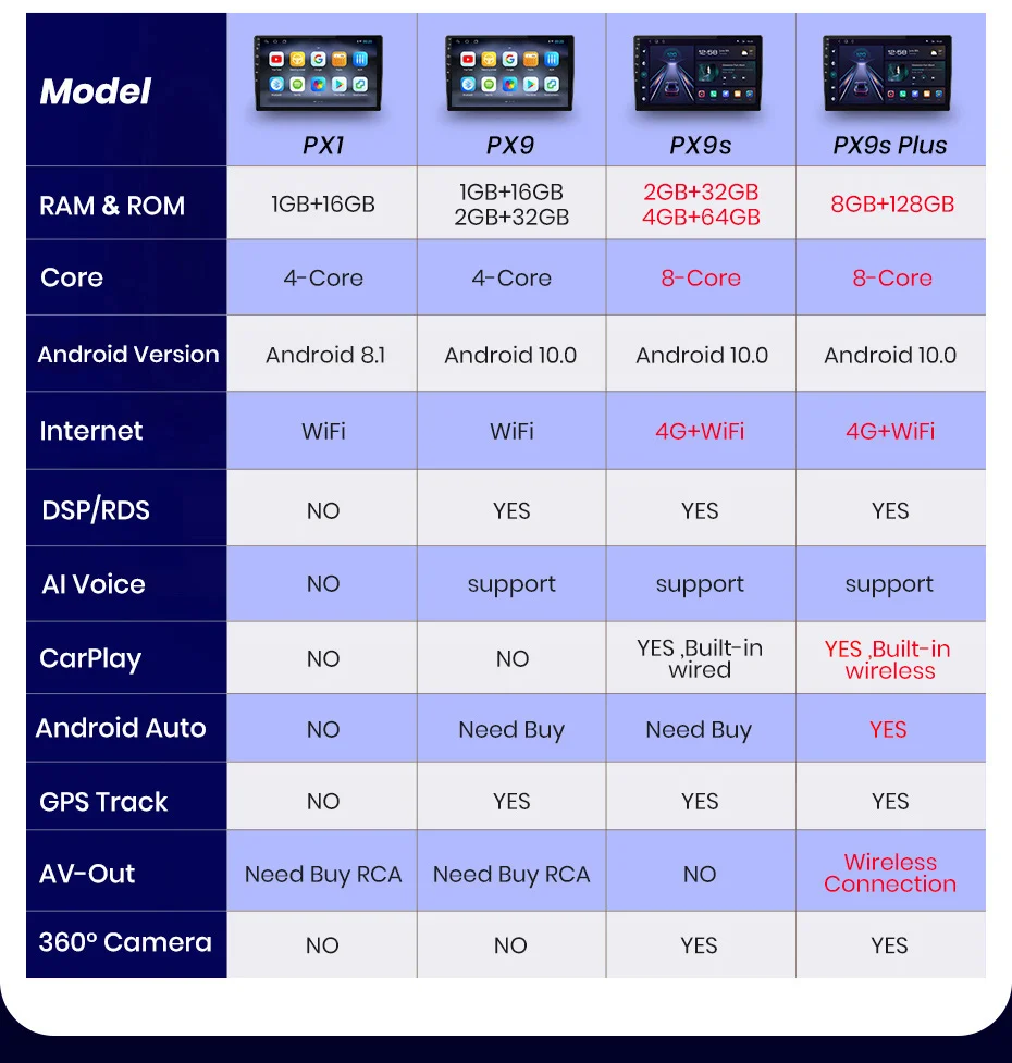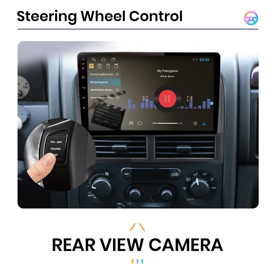 >> 9 inch 2.5D Capacitive Screen + Quad Core 1.2GHZ CPU + DDR3 1GB /2GB / 4GB Flash ( optional) + 16GB /32GB / 64GB Memory ( optional) + Built-in Wifi (4G optional) + GPS Navigation (Map free update)+ Steering Wheel Control + Mirror Link + Bluetooth + Built-in Microphone + FM/AM + RDS + support USB DVR ADAS + support Europe DAB Function + 1080P Video Play + HD 1024*600 + support Tire Pressure Monitoring System + support Voice Control