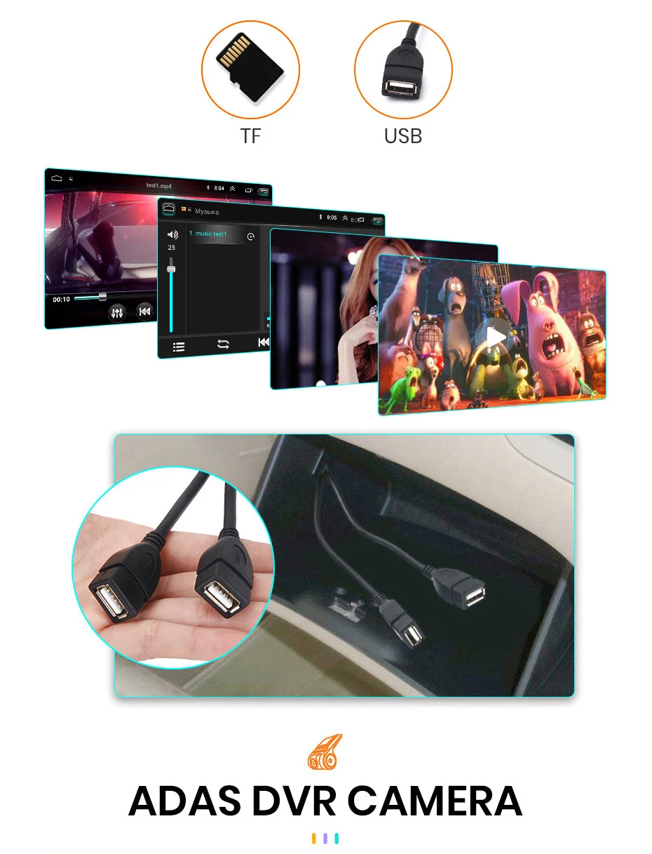 When the car radio is connected with ADAS video recorder, it will make Advanced Driving Assistance System work, and will warn you if your car is too close to front vehicle or if your car deviates from the lane, to help your driving safer and easier.