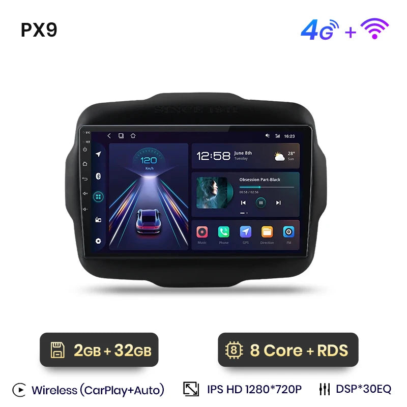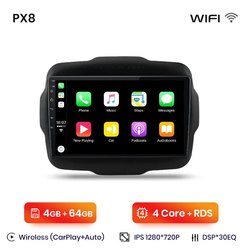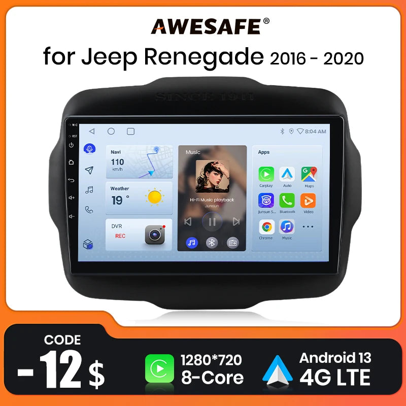 AWESAFE Wireless CarPlay Android 13 Radio For Jeep Renegade 2016 2017 2018 - 2020 GPS Navigation Stereo Car Intelligent Systems