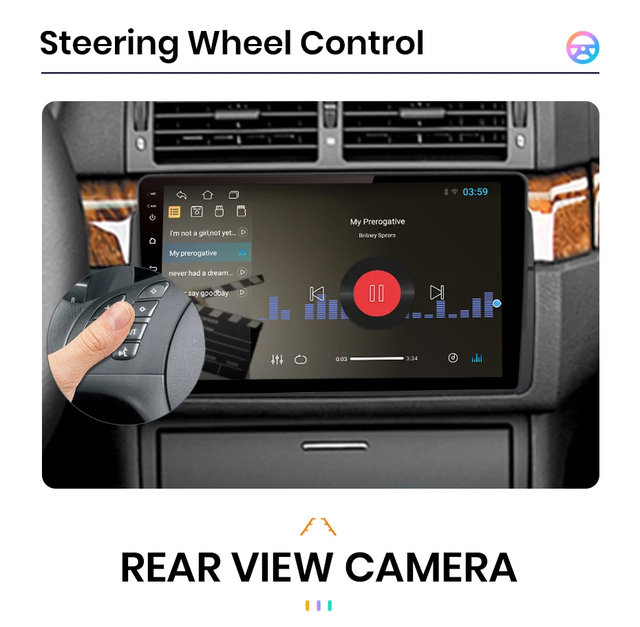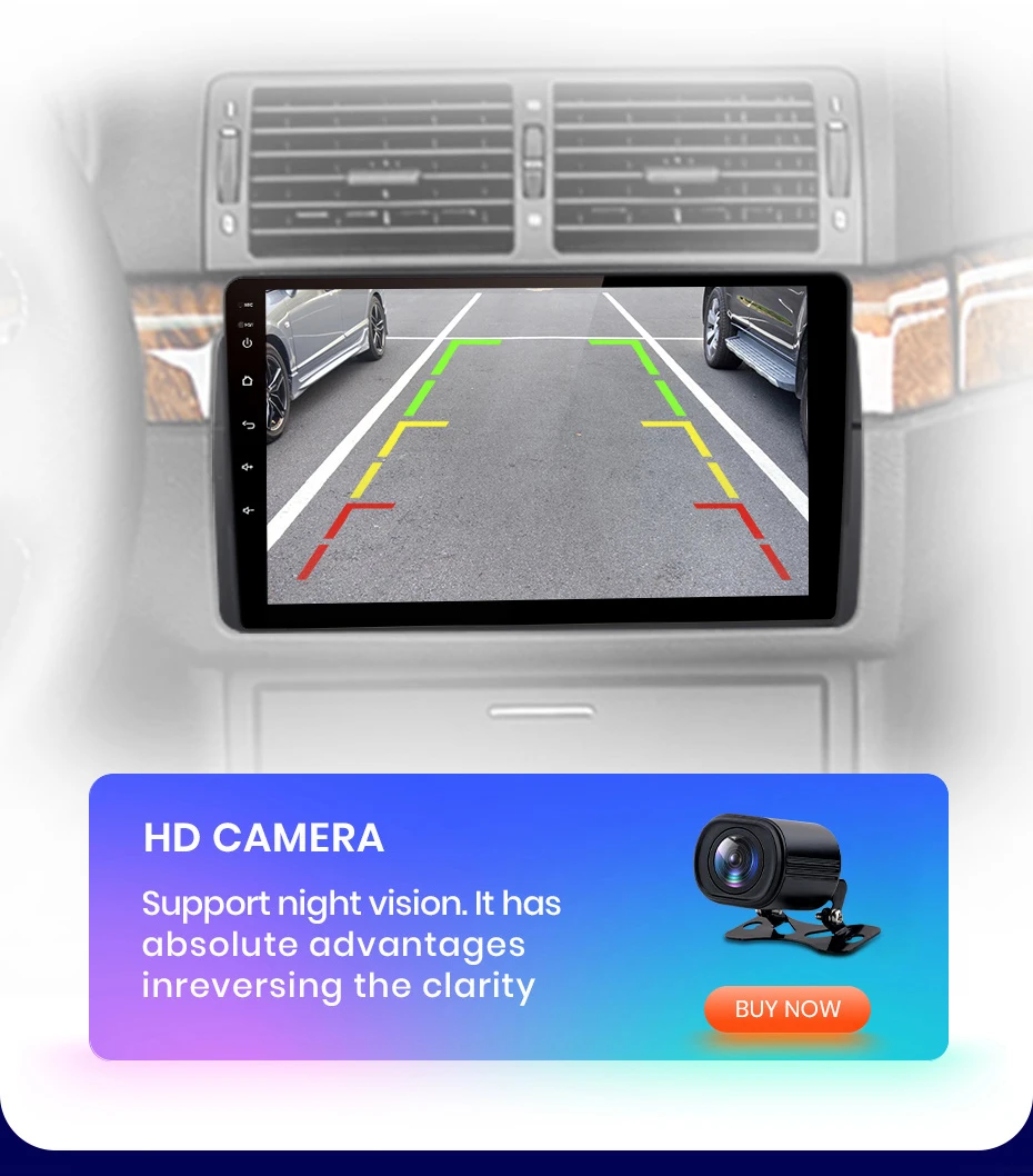 When the car switchs to reverse gear, the screen will switch to rear view with parking lines automatically, help you reverse or park the car.