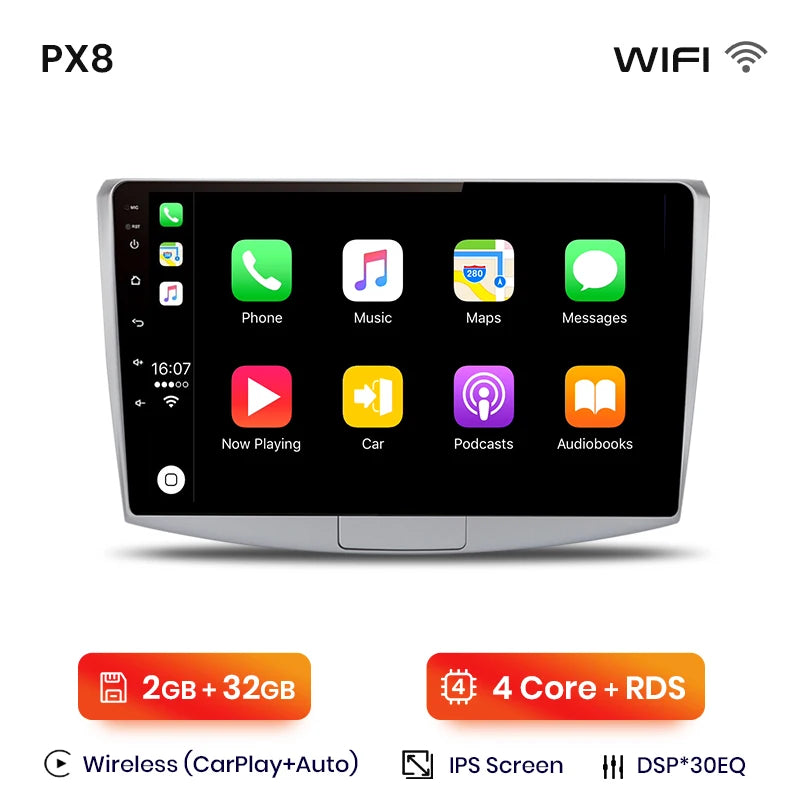 >> 9 inch 2.5D Capacitive Screen + Quad Core 1.2GHZ CPU + DDR3 1GB /2GB / 4GB Flash ( optional) + 16GB /32GB / 64GB Memory ( optional) + Built-in Wifi (4G optional) + GPS Navigation (Map free update)+ Steering Wheel Control + Mirror Link + Bluetooth-compatible+ Built-in Microphone + FM/AM + RDS + support USB DVR ADAS + support Europe DAB Function + 1080P Video Play + HD 1024*600 + support Tire Pressure Monitoring System + support Voice Control