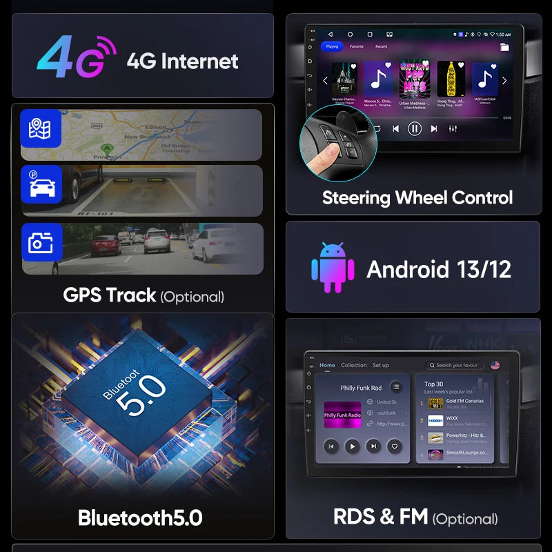 The device has navigator, play music, parking function, etc. In order to connect Internet, Wifi versions need to make your smartphone serve as a hotspot. For car owners who use Internet frequently when traveling, we recommend to buy 4G versions.