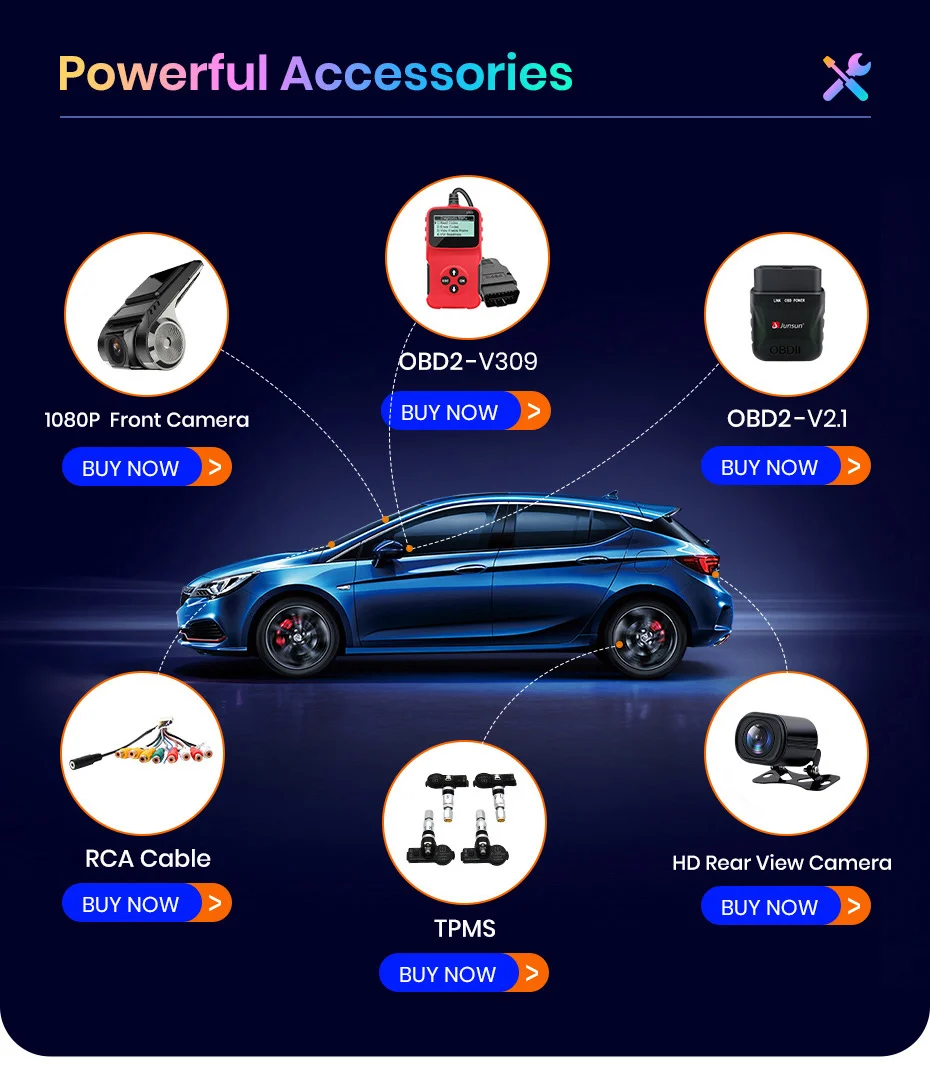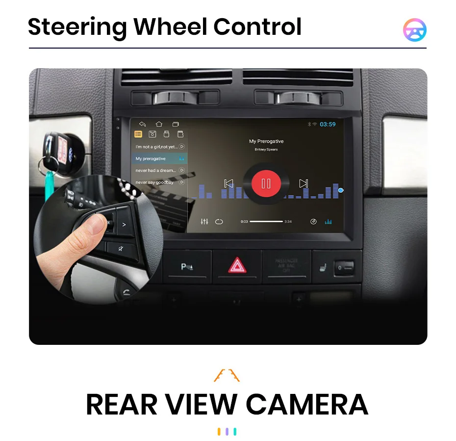 >> 9 inch 2.5D Capacitive Screen + Quad Core 1.2GHZ CPU + DDR3 1GB /2GB / 4GB Flash ( optional) + 16GB /32GB / 64GB Memory ( optional) + Built-in Wifi (4G optional) + GPS Navigation (Map free update)+ Steering Wheel Control + Mirror Link + Bluetooth-compatible+ Built-in Microphone + FM/AM + RDS + support USB DVR ADAS + support Europe DAB Function + 1080P Video Play + HD 1024*600 + support Tire Pressure Monitoring System + support Voice Control