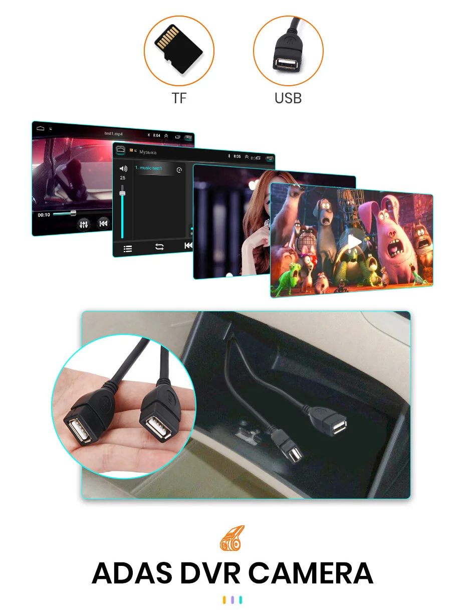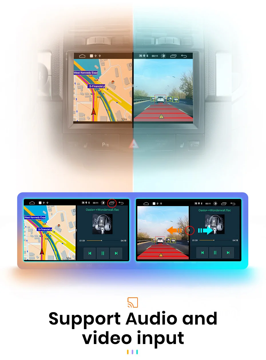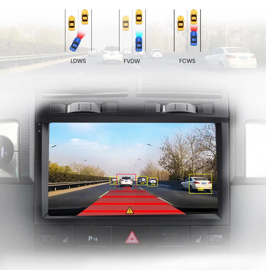When the car radio is connected with ADAS video recorder, it will make Advanced Driving Assistance System work, and will warn you if your car is too close to front vehicle or if your car deviates from the lane, to help your driving safer and easier.
