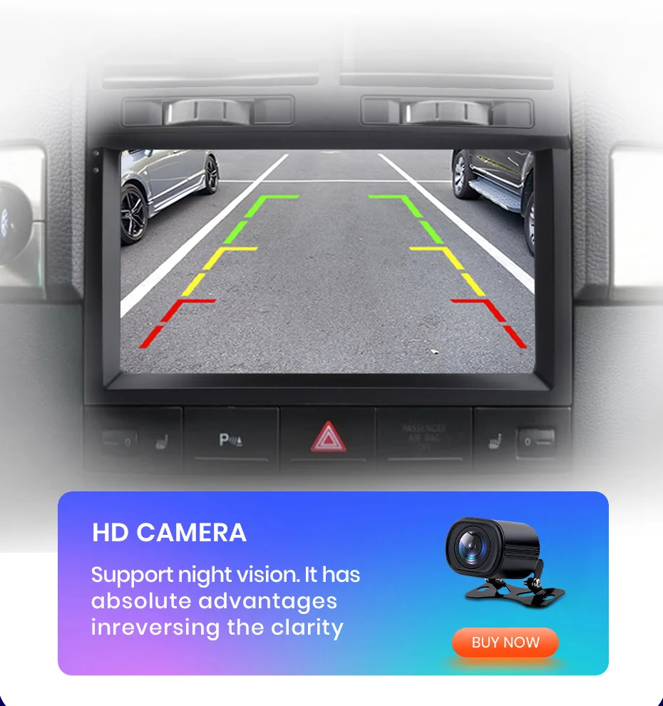When the car switchs to reverse gear, the screen will switch to rear view with parking lines automatically, help you reverse or park the car.