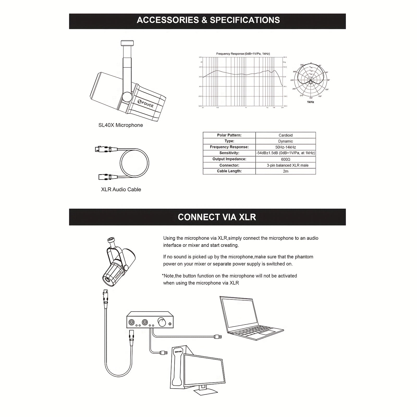 The SL40X Is A Single XLR Version Launched After The SL40. The SL40X Has The Same Dynamic Pickups As The Popular SL40. It Can Be Easily Connected To Professional Interfaces Through XLR Without Adding A Built-in Preamplifier To Obtain Additional Gain.
