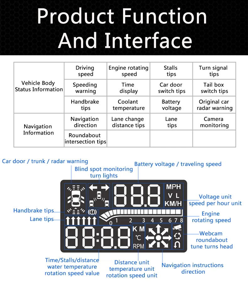 Package Including :1Pcs* HUD Head Up Safe Drive Display