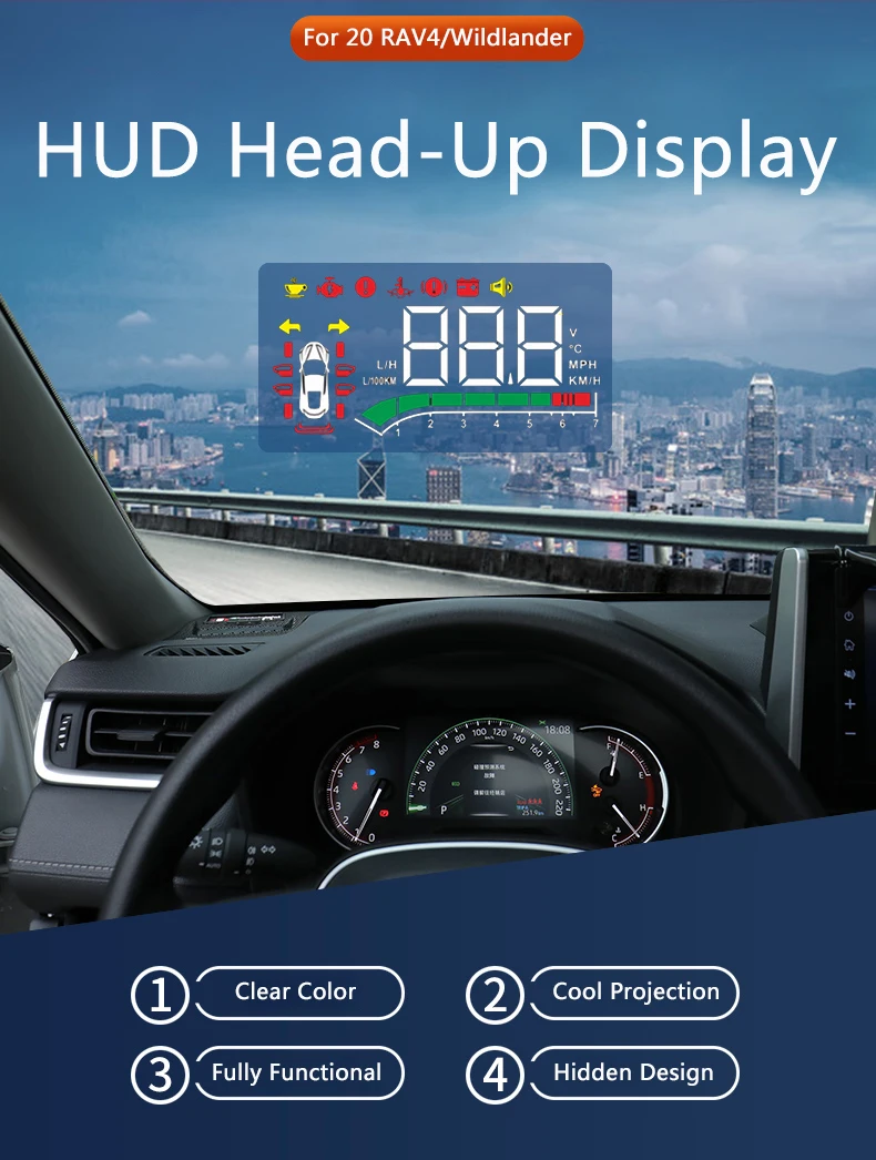 QHCP Car Head Up Display HUD Safe Driving Screen Hidden HD Projector Windshield Fit For Toyota RAV4 2020-2023 Interior Accessory