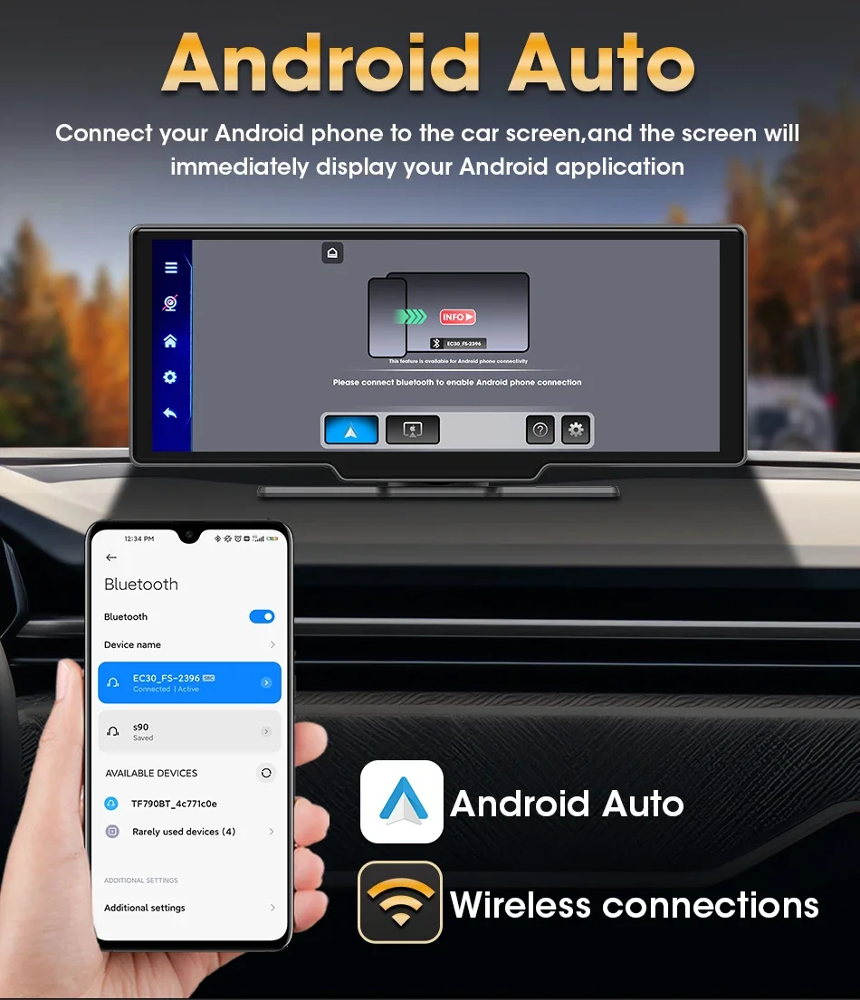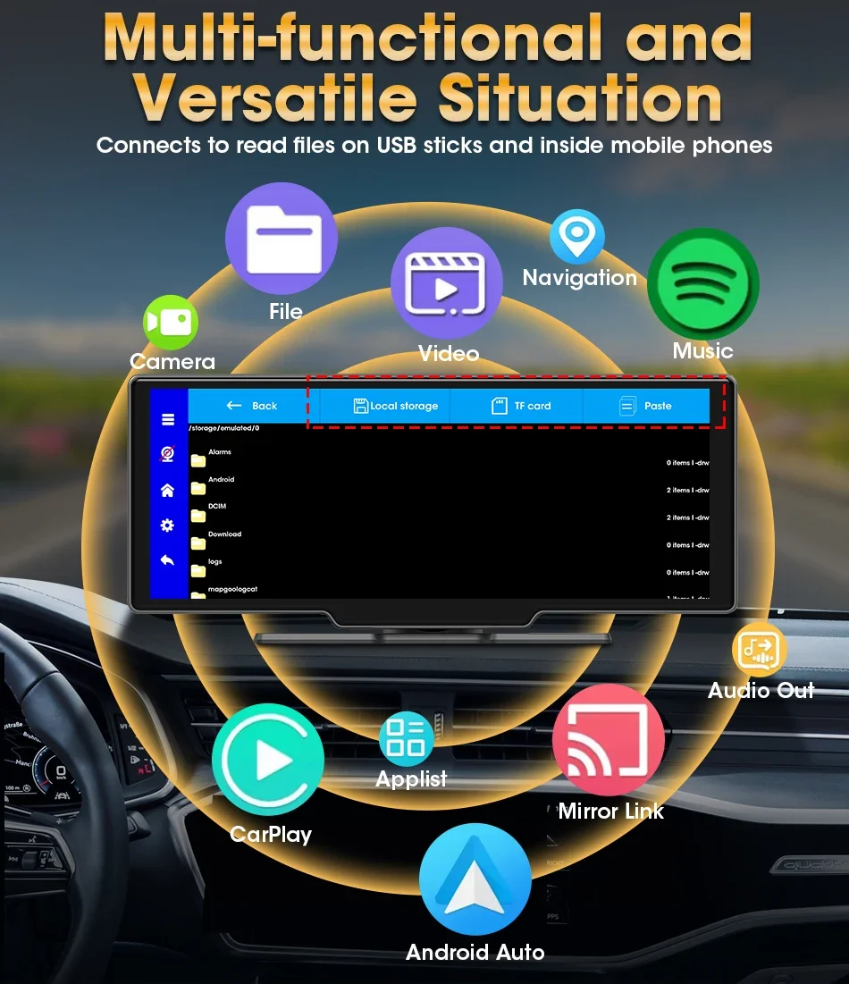 Connect your Android phone to the car's screen, and the screen immediately displays your Android app,it's that simple. You can tap the screen to get driving directions, send text messages, or even make phone calls hands-free