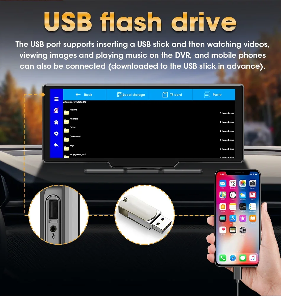 The USB interface supports inserting the U disk, and then watch the video and play the music on the screen (download video/music to the U disk in advance).
