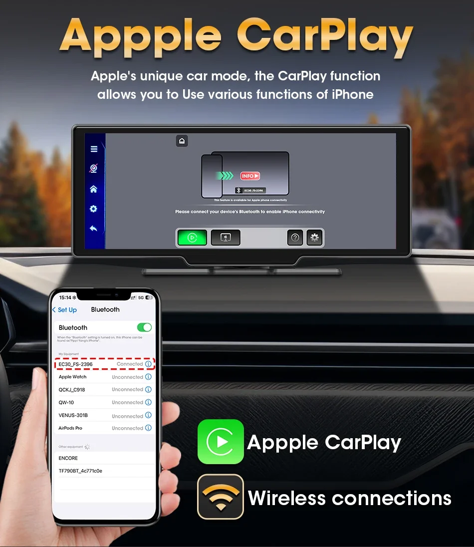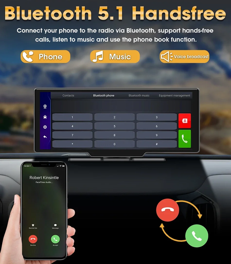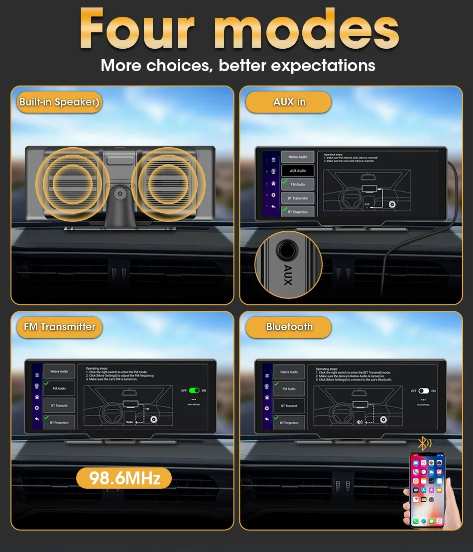 (2) Built-in dual-channel FM transmitter, can be connected to the original car to enjoy the original car audio quality (only needs to be manually connected once, and then can be automatically connected).