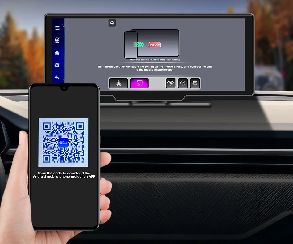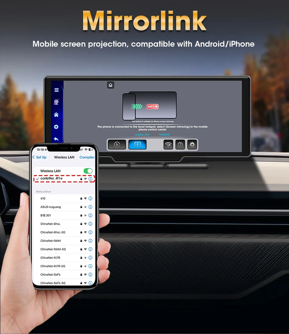 Through AirPlay and miracast functions, you can directly cast mobile phone videos, mobile phone pictures and mobile phone music to the driving recorder