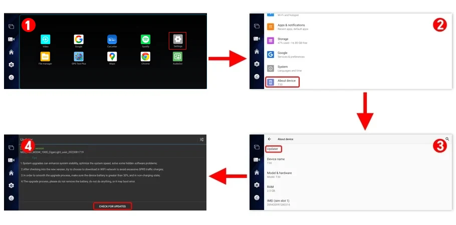 (Please send us the device IEMI number and version number, and we will remotely send you the updated software)