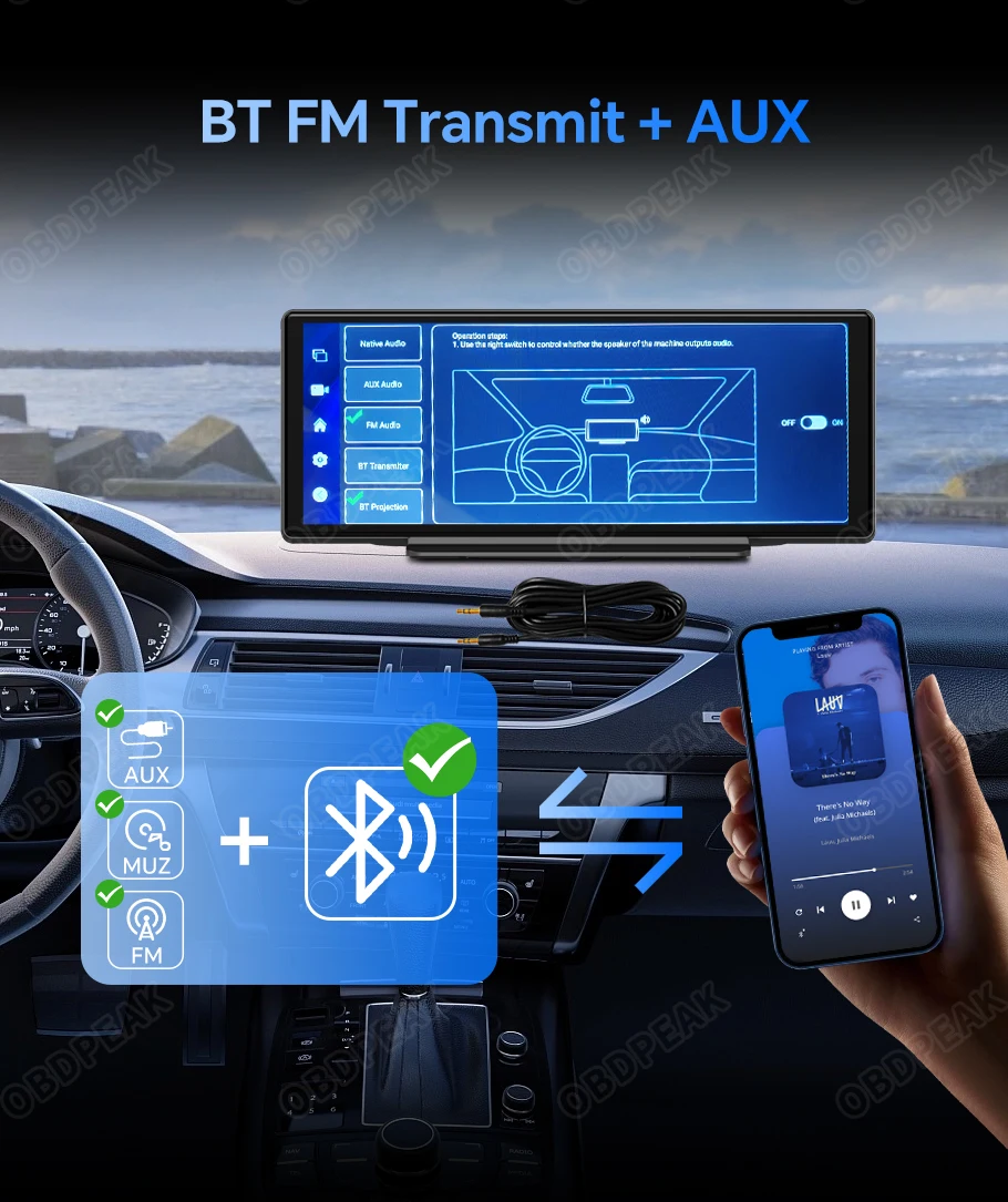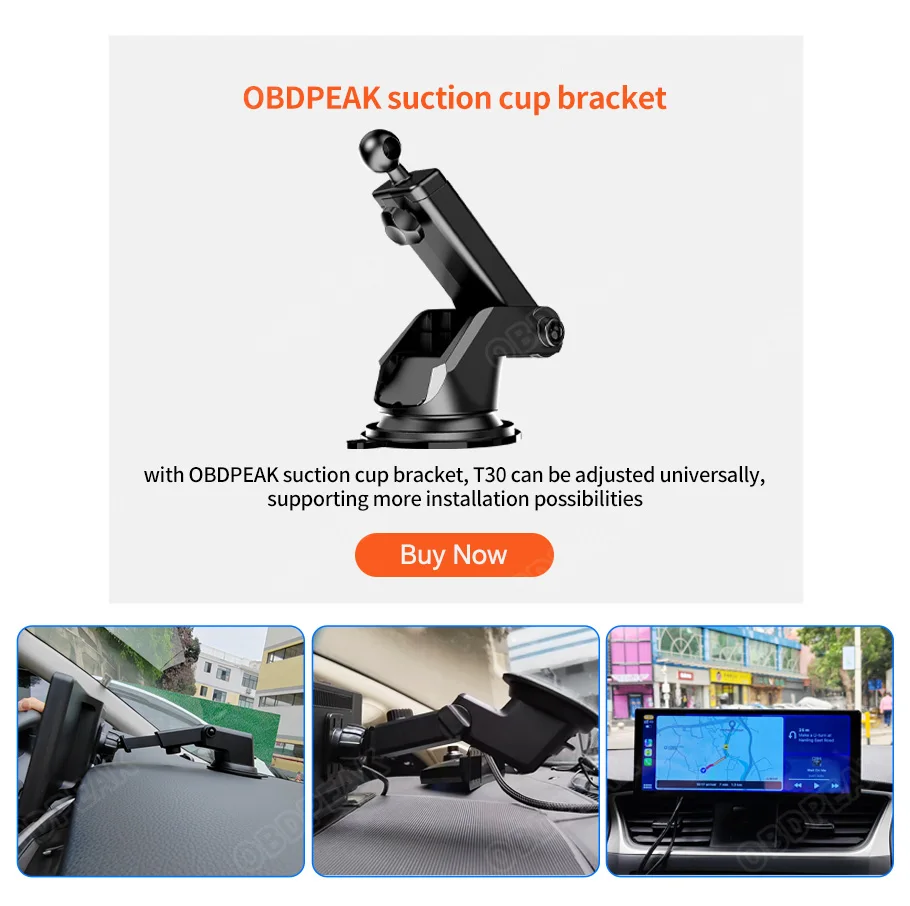 The OBDPEAK T30 recorder uses the latest technology, supports wireless Carplay and Android Auto functions, users can easily and safely make calls, listen to music, send and receive messages, use navigation, support Siri, and more. (Wireless Connections, via BT or WiFi)