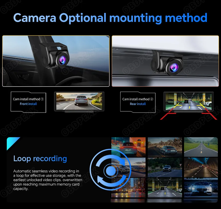 The OBDPEAK T30 only has one external camera (optional), which you can install in the front or rear .