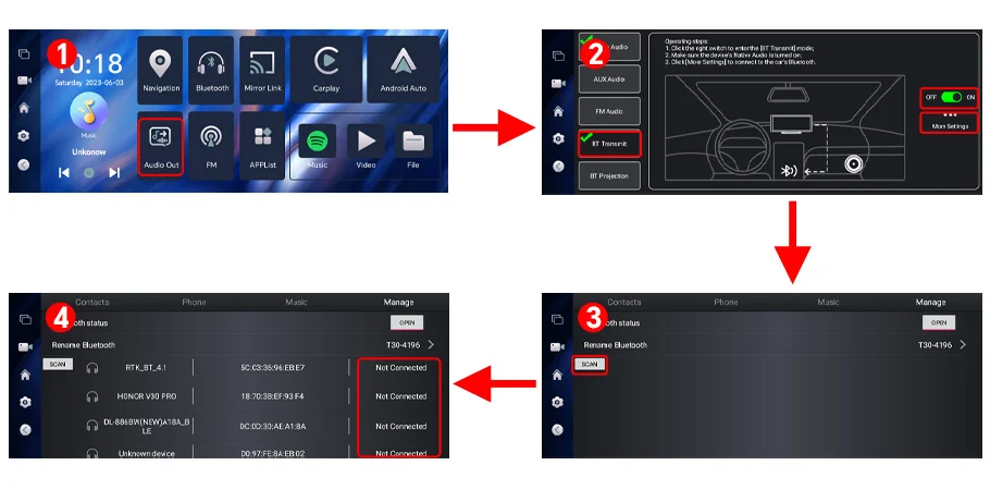 5. Connect the car audio system through Bluetooth using a mobile phone connected to Carplay/Android Auto