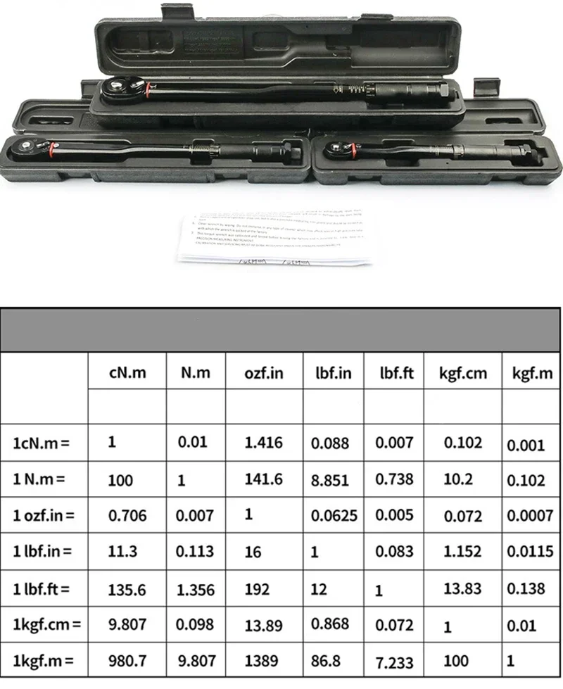 1/4 inch drive: 2-24N.m, 5-25N.m;