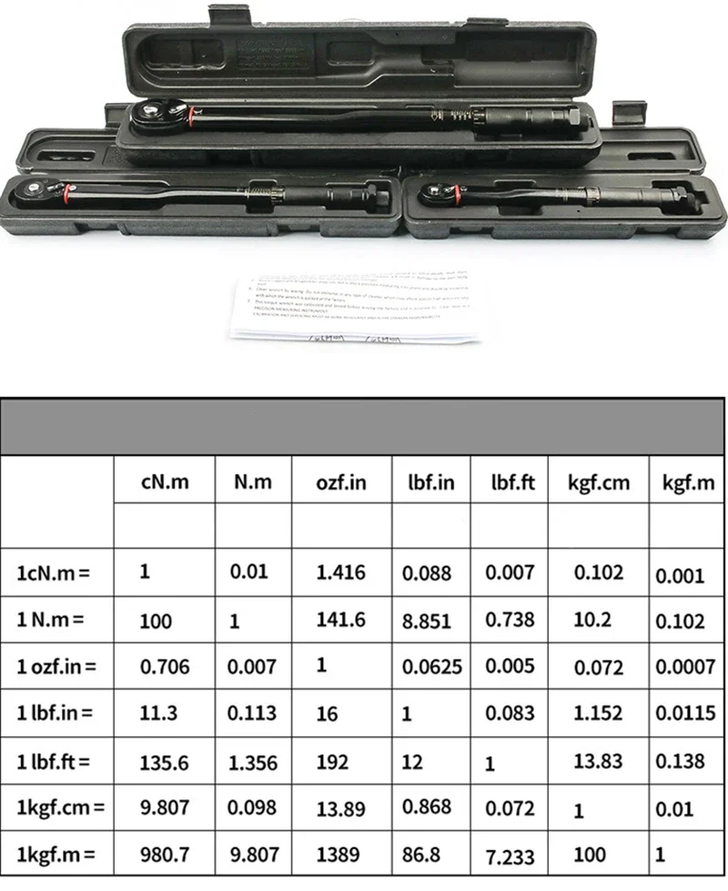 1/4 drive torque range: 2-24N.m, 5-25N.m