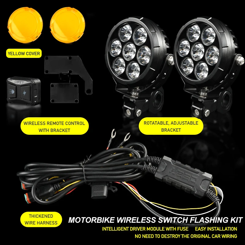 2pcs lamp, 2pcs cover, Remote harness, Bracket, Screw Kits