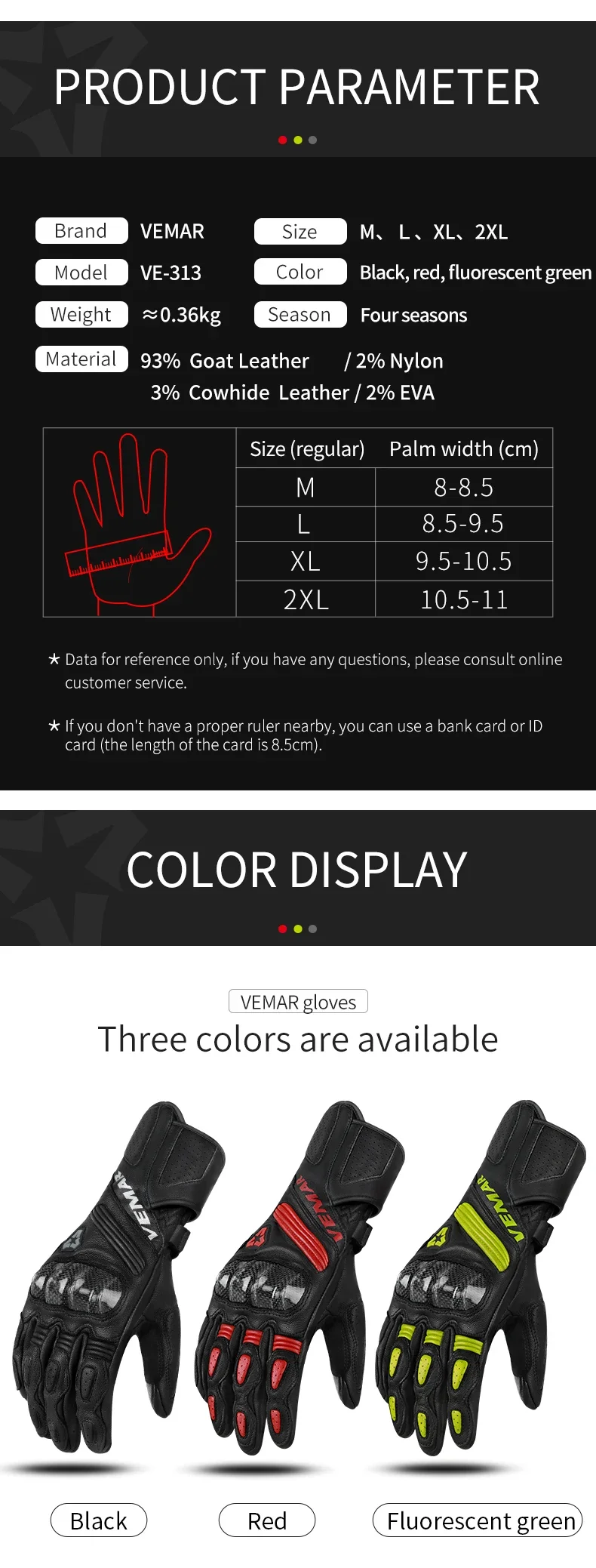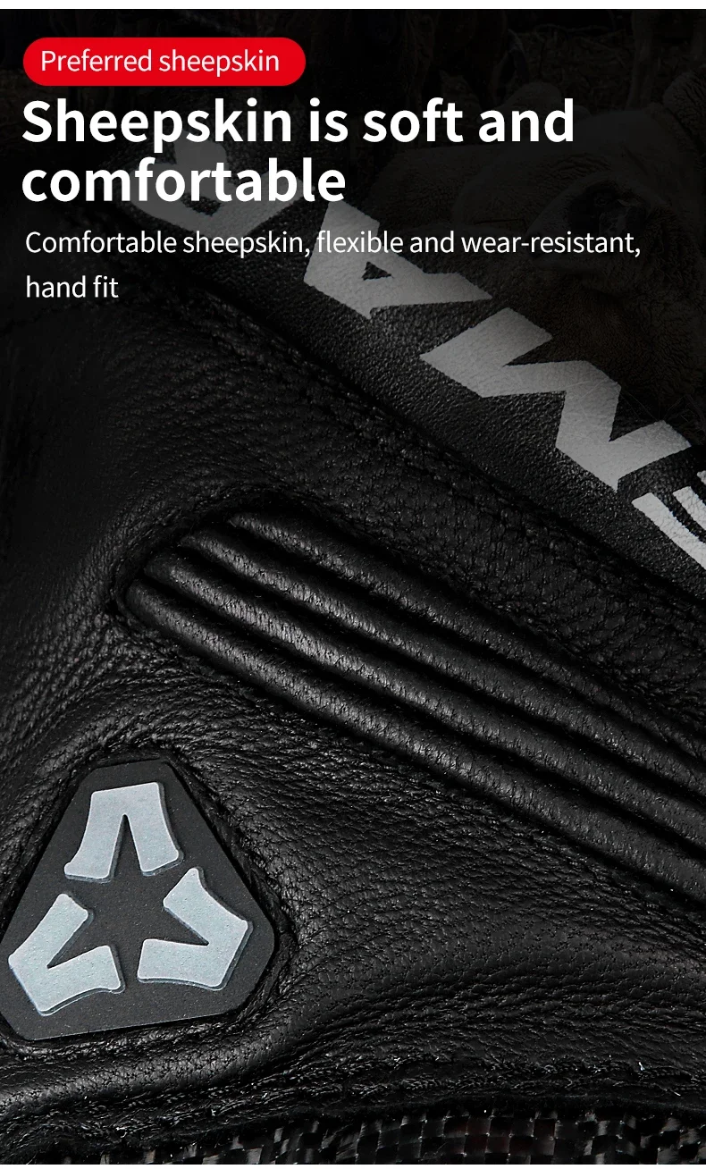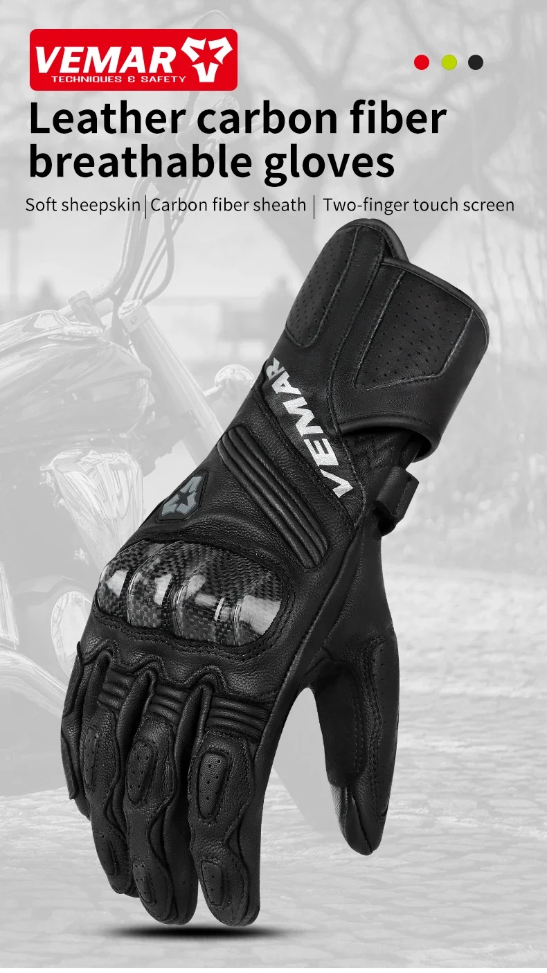 VEMAR VE-313 Leather Soft Motorcycle Gloves Breathable With Holes Goat Gloves Double Finger Touch Screen Carbon Fiber Shell Gloves