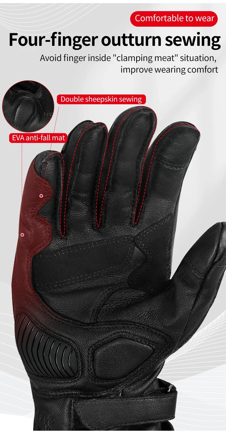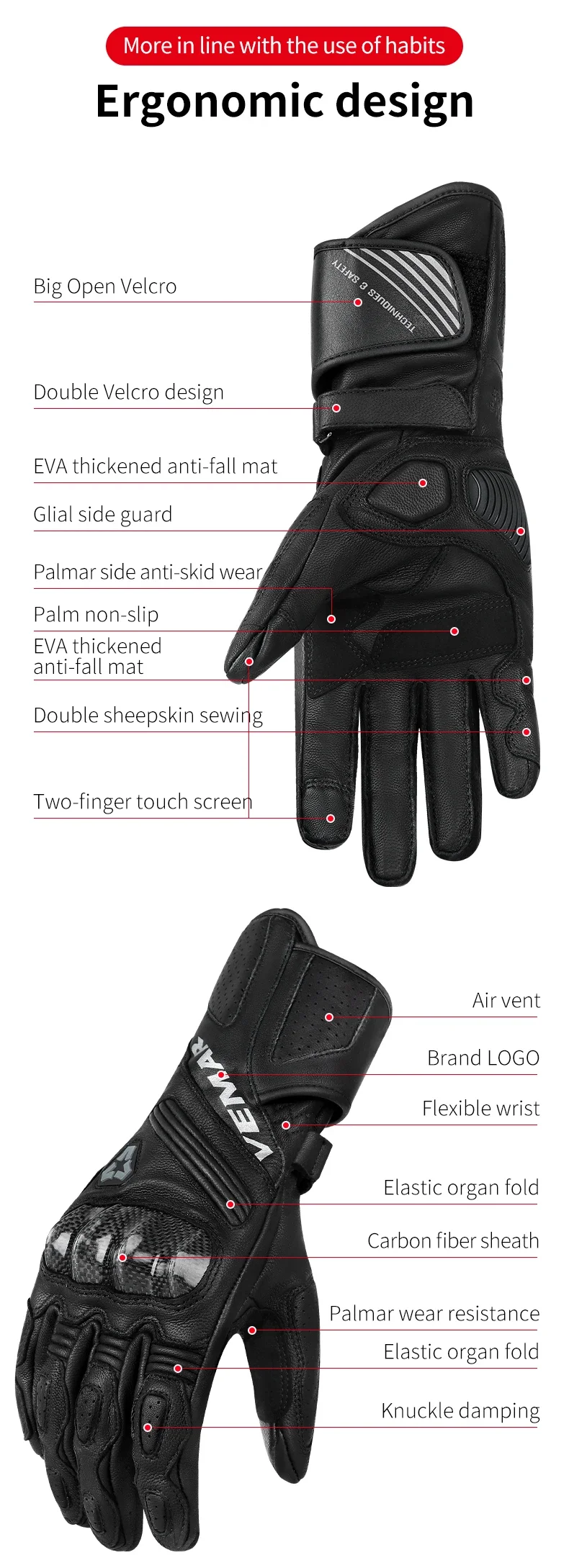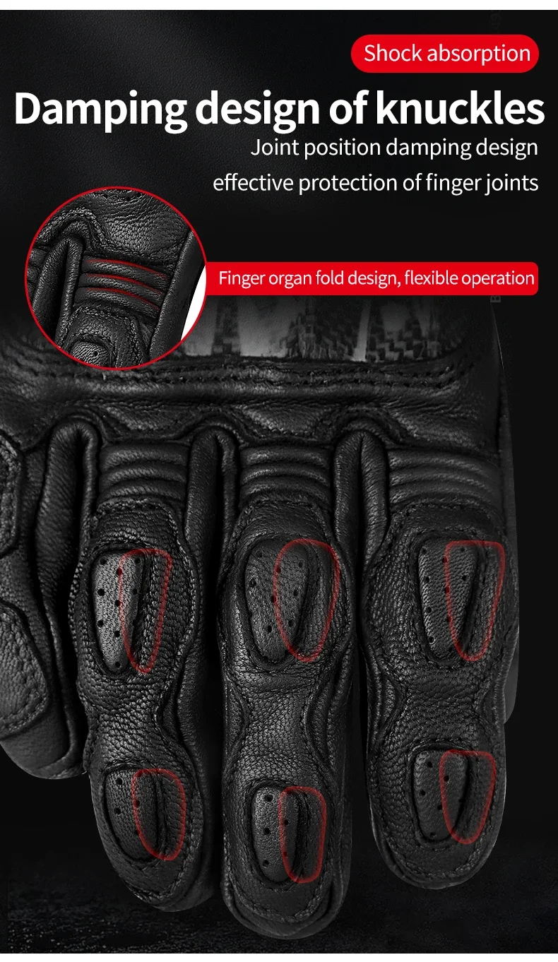 VEMAR VE-313 Leather Soft Motorcycle Gloves Breathable With Holes Goat Gloves Double Finger Touch Screen Carbon Fiber Shell Gloves