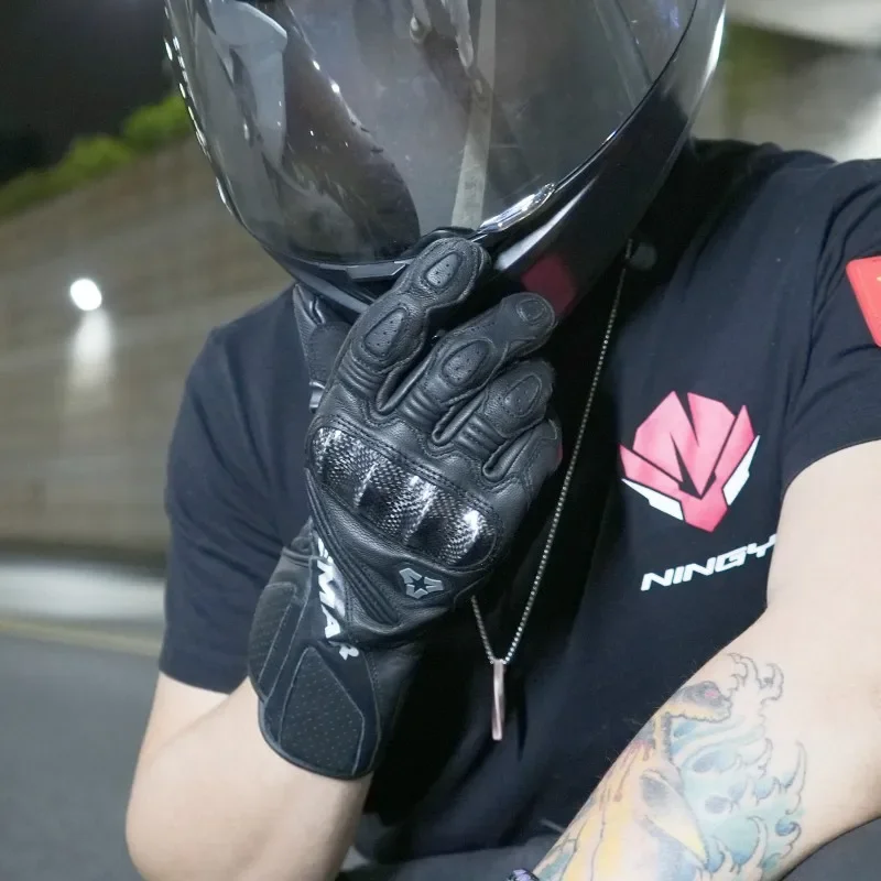 Features: genuine leather, carbon fiber protection, breathability, touch screen
