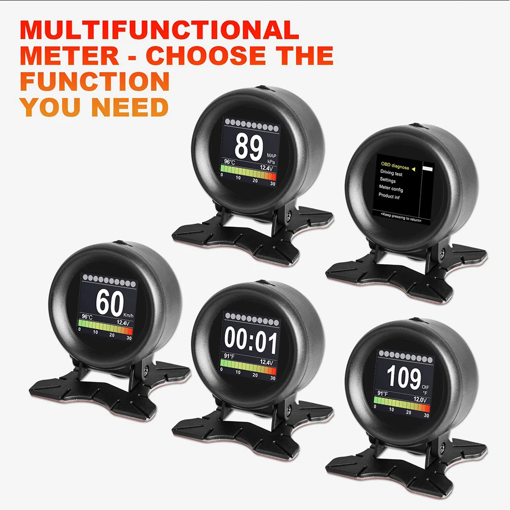 Vjoycar X60 OBD is a smart and multi-functional speedometer that can read the real-time data by the car's ECU, so that the driver can view the car data while driving,including Driving speed display, Engine RPM display, Coolant temperature display, Battery voltage display, etc. the biggest highlight is Diagnostic and Clear Trouble Codes.