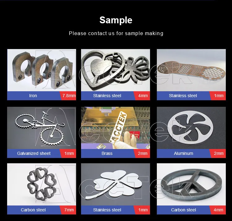 Laser power: 1.5kw, 2kw, 3kw 6kw, 12kw, 20kw. We will recommend you the most suitable laser power according to your works.