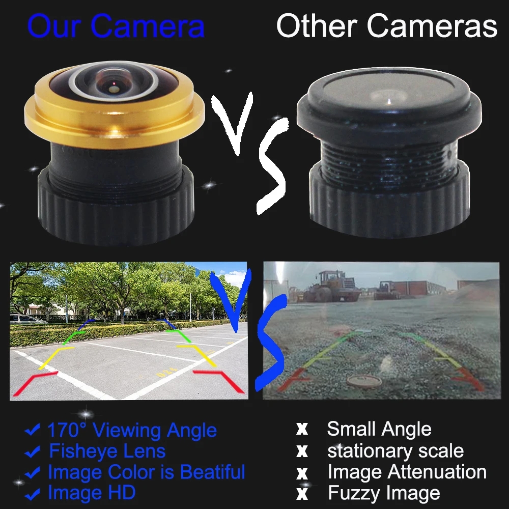 * AHD 720P Car Front Rear Side Camera ---1280*720P resolution, high clarity, 170 degrees viewing angle, no worry about blind spot area, IP68 waterproof, works properly under car washing or bad weather, fantastic night vision effect.