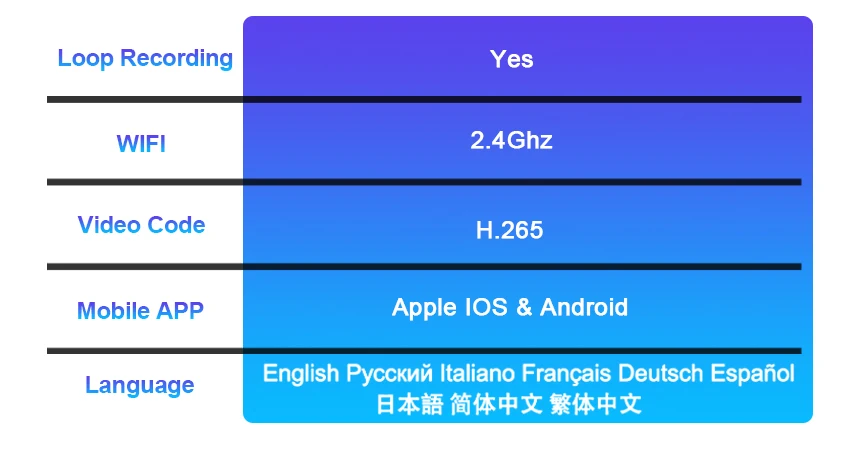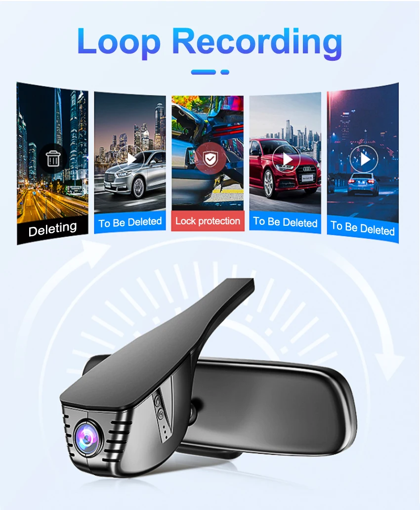 Auto overwrite the oldest videos with the newest when card reaches capacity.( Support 256GB SD card Max.)