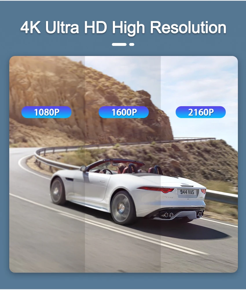 Equipped with Novatek's flagship chip, it will not crash even under high-intensity work. With an 5 megapixel lens, it can record up to 2160P video, and provide professional 30fps video, which can vividly capture your driving moments and record detailed evidence.