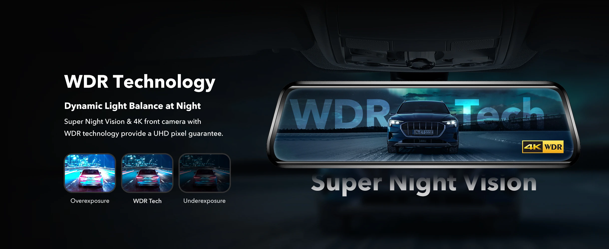 The WDR tech balances the lights, providing clear visibility when driving at night. After connecting our hardware kit, you can activate the parking monitoring mode, which provides enhanced security and peace of mind for your vehicle when parked. No more worrying about potential accidents or thefts while you're away!