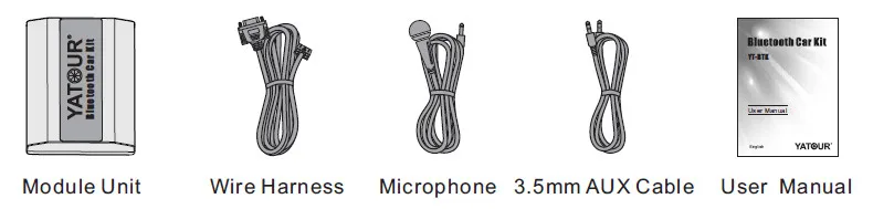 Includes: l Module unit for Toyota l Toyota Small(6+6) plug l AUX cable | Microphone | 6+6 pin cable |