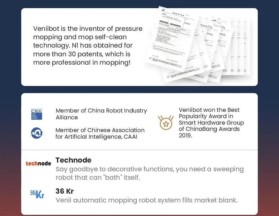 Veniibot focuses on the development of sweeping and mopping robot.